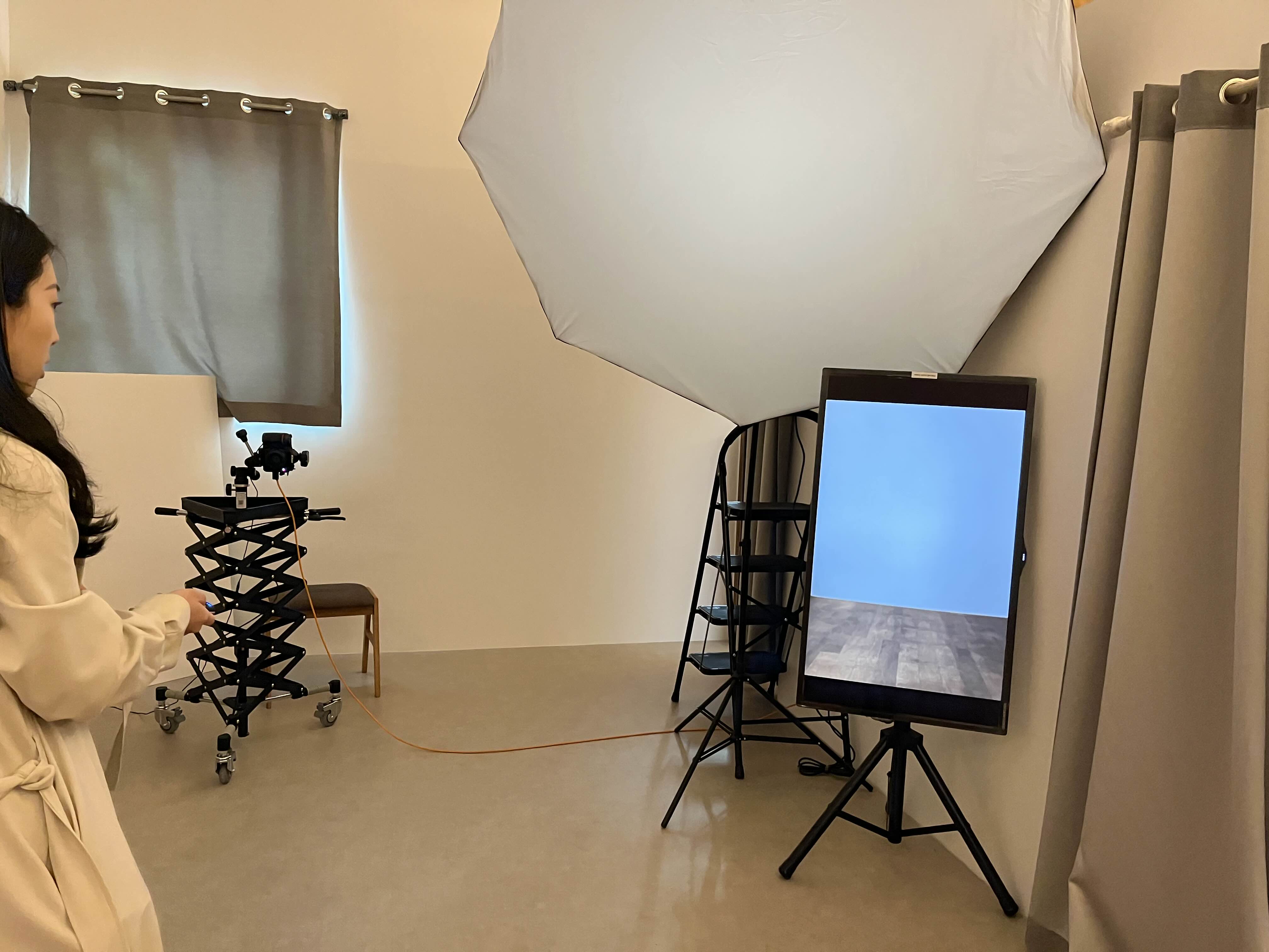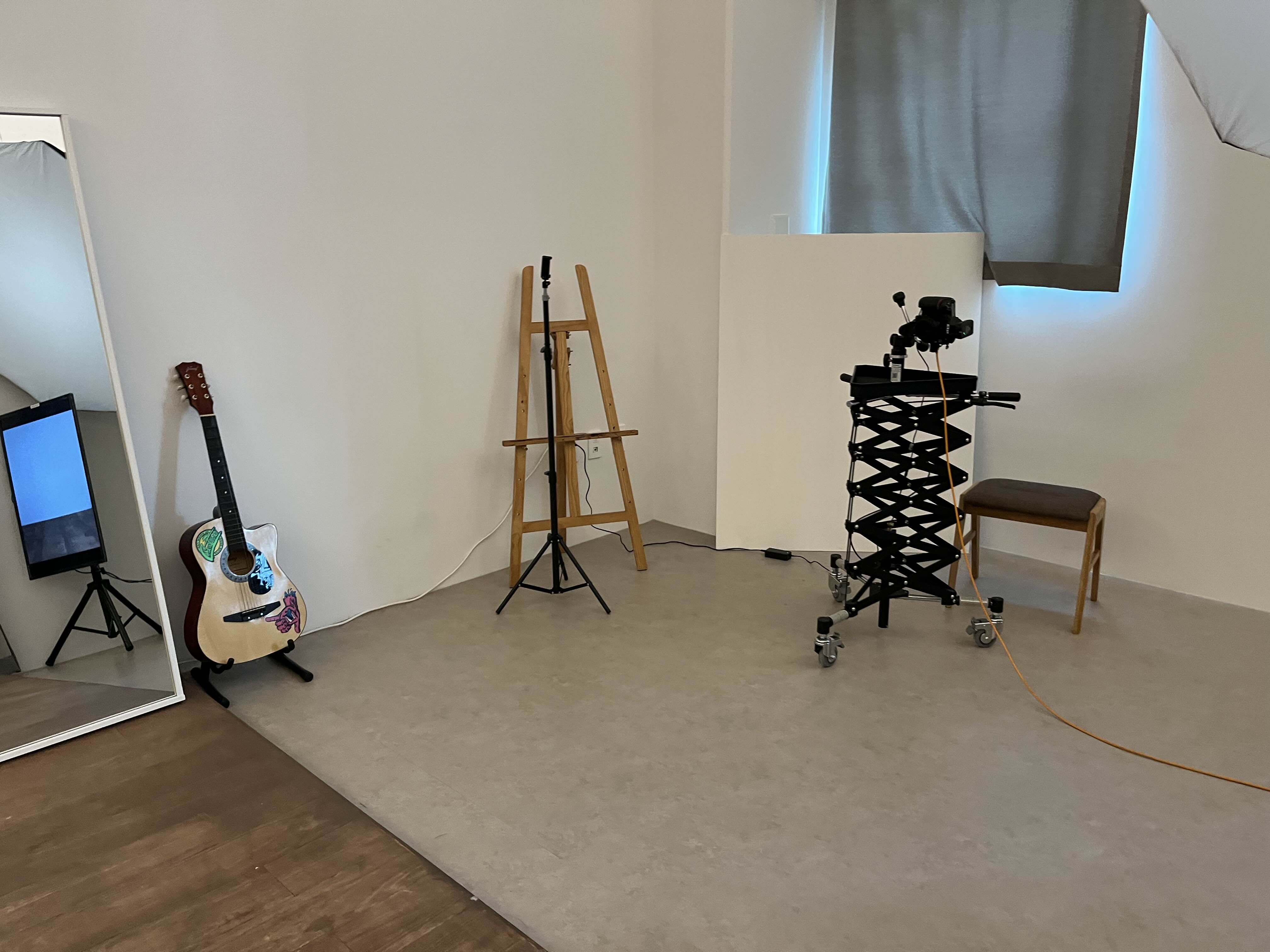 한쪽엔 앉아서 찍을 때 필요한 의자가 있고