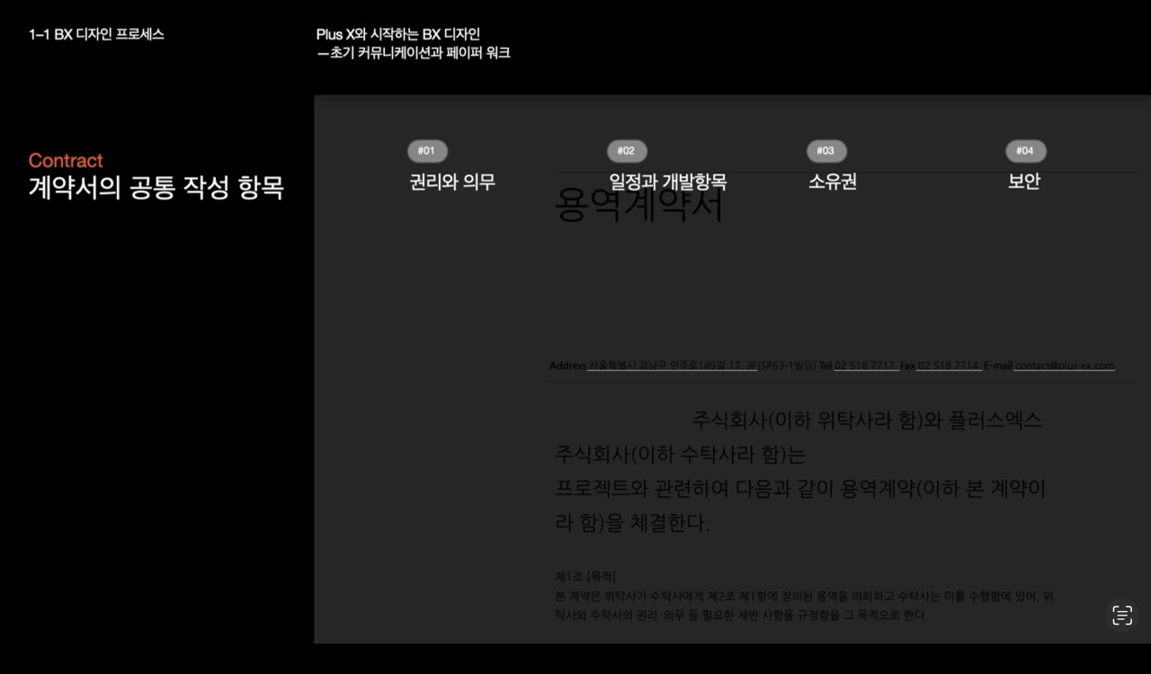__계약서의 공통 작성 항목 •권리와 의무 •일정과 개발항목 •소유권 •보안