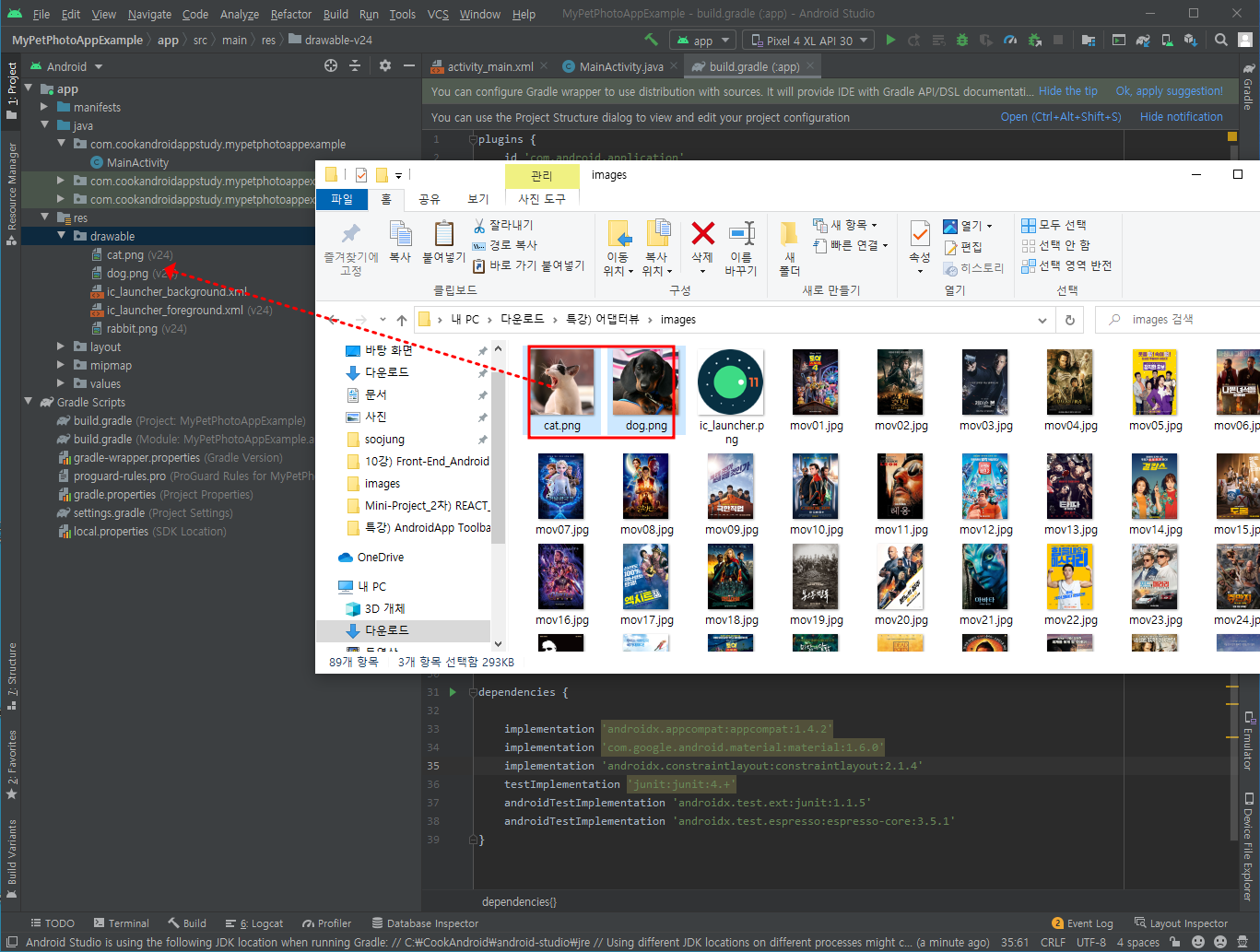 imgPet = (ImageView)findViewById(R.id.ImgPat); // 선택된 이미지가 보여지는 이미지뷰 영역
