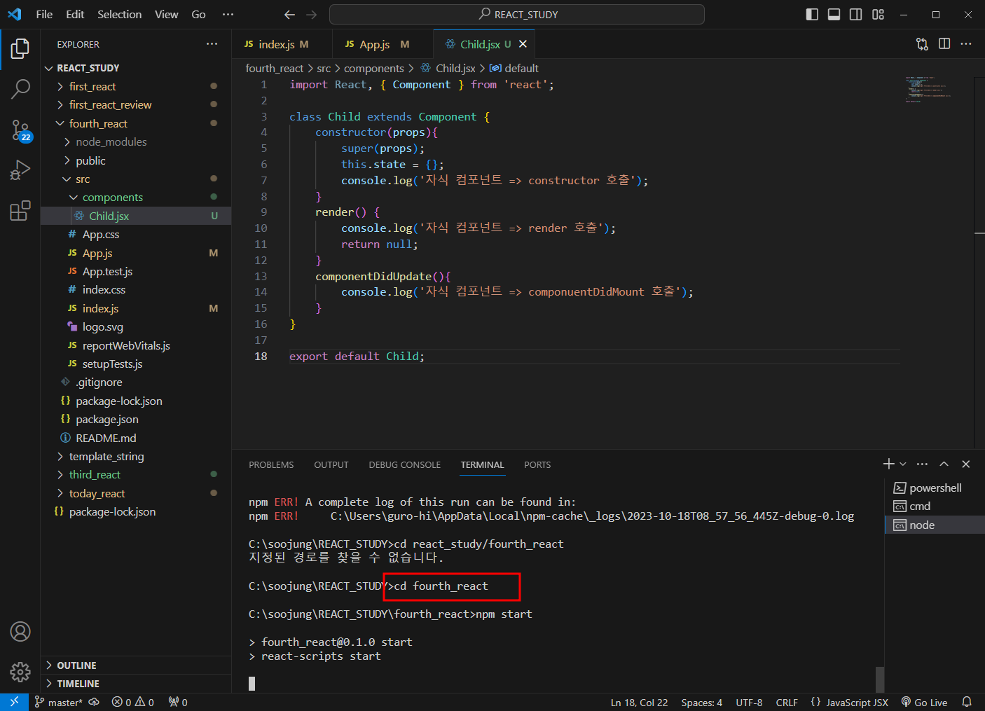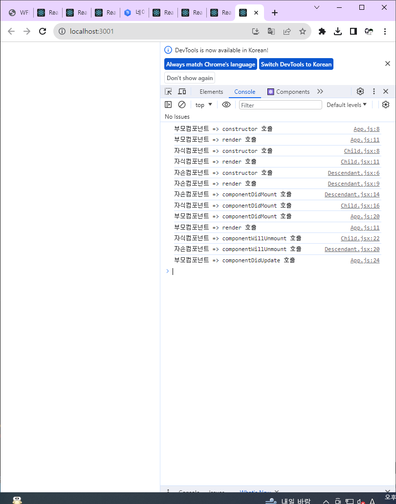 알 수 있습니다. 만약 부모컴포넌트와 자식컴포넌트 모두 componentDidMount 메서드를 호출한다면