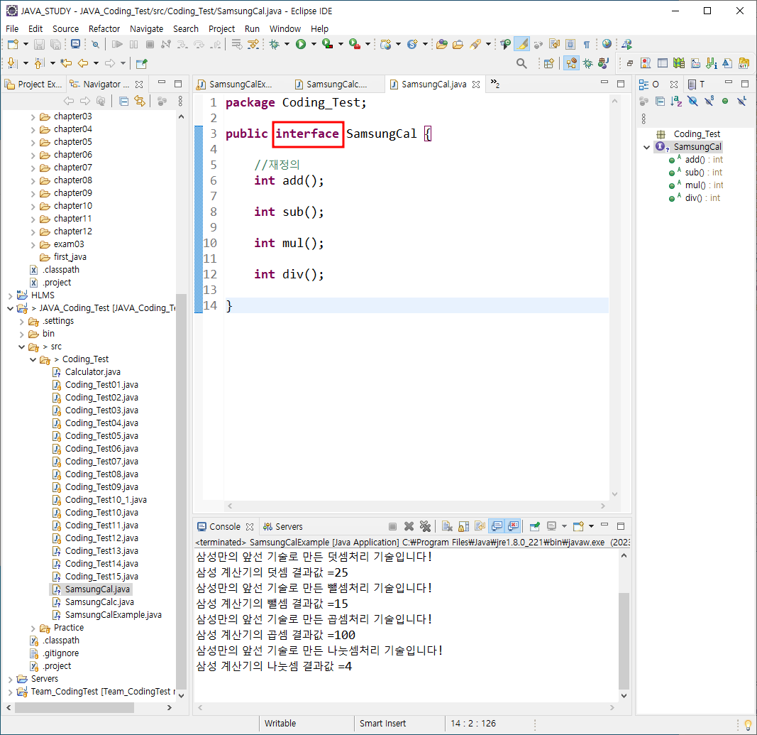 System.out.println("삼성 계산기의 덧셈 결과값 =" + samCalc.add());
