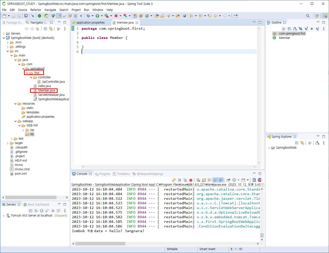 - java - com - springboot - first 패키지 안에 다음과 같이 Member.java 소스 코딩해 줌.