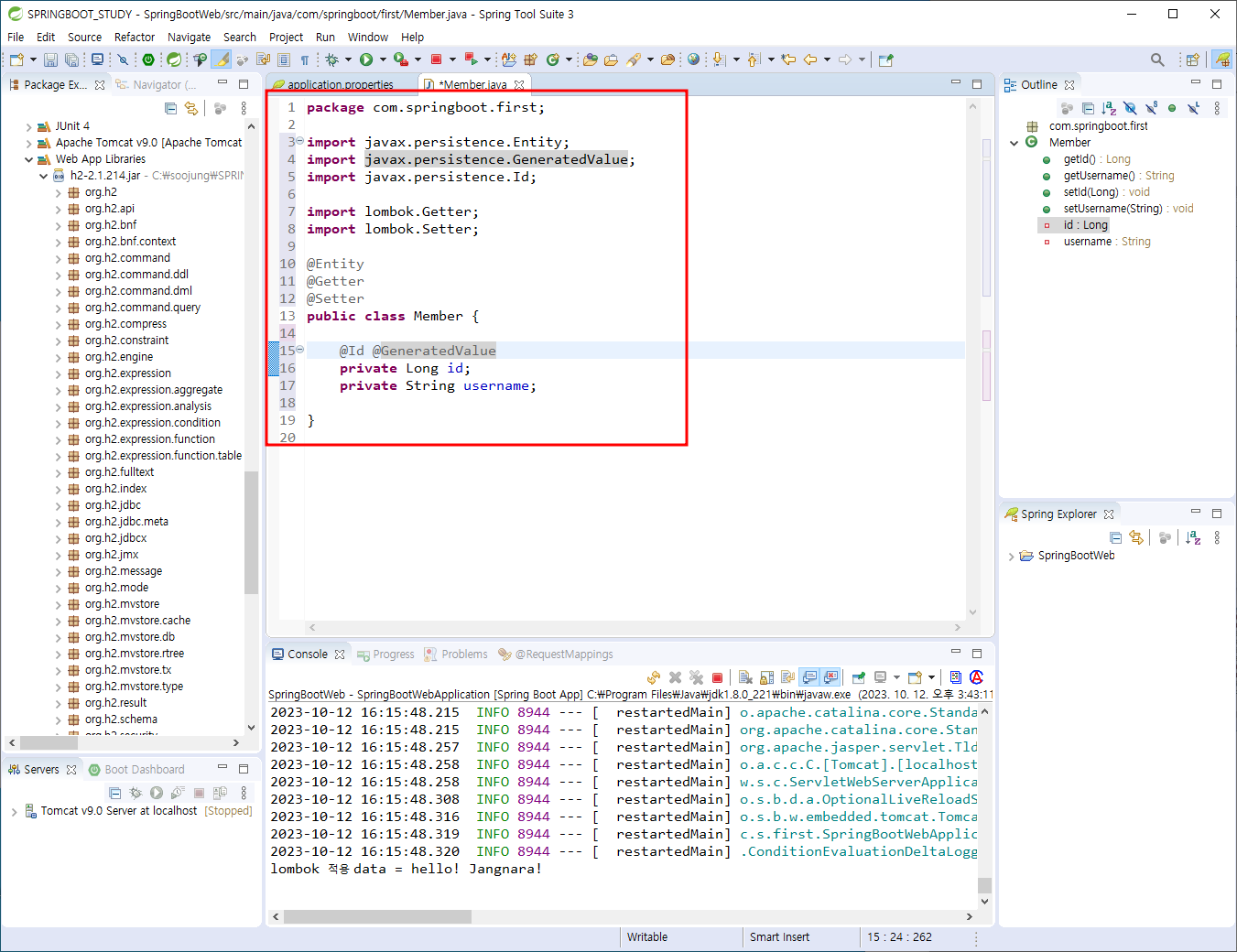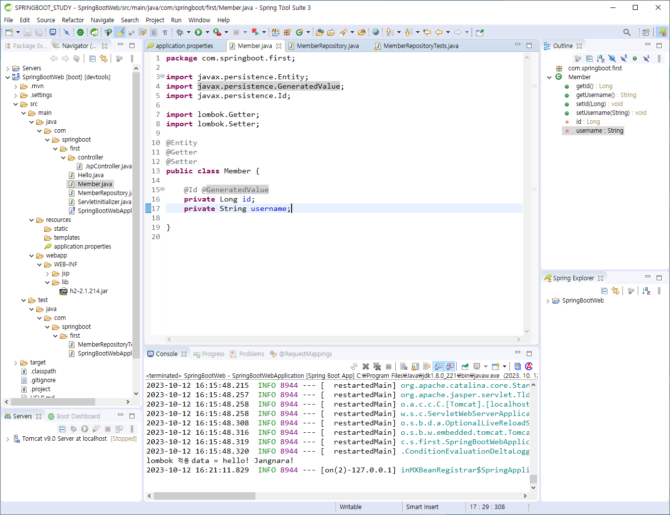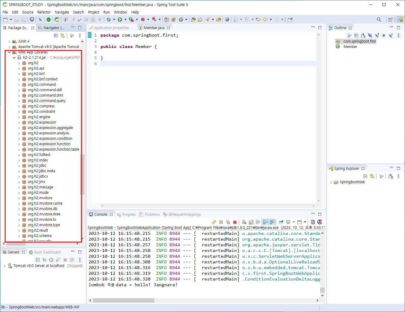 - java - com - springboot - first 패키지 안에 다음과 같이 Member.java 소스 코딩해 줌.
