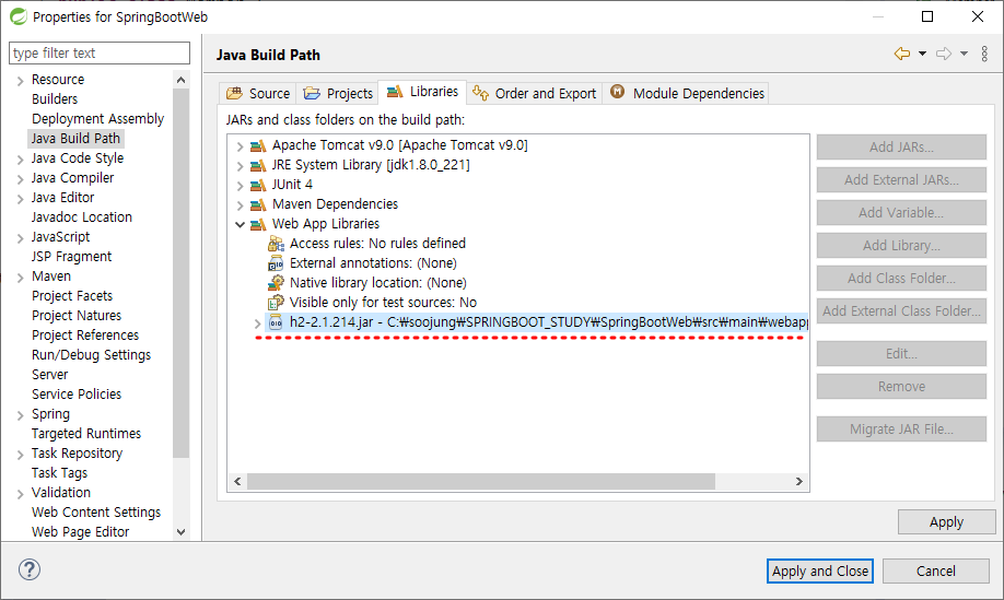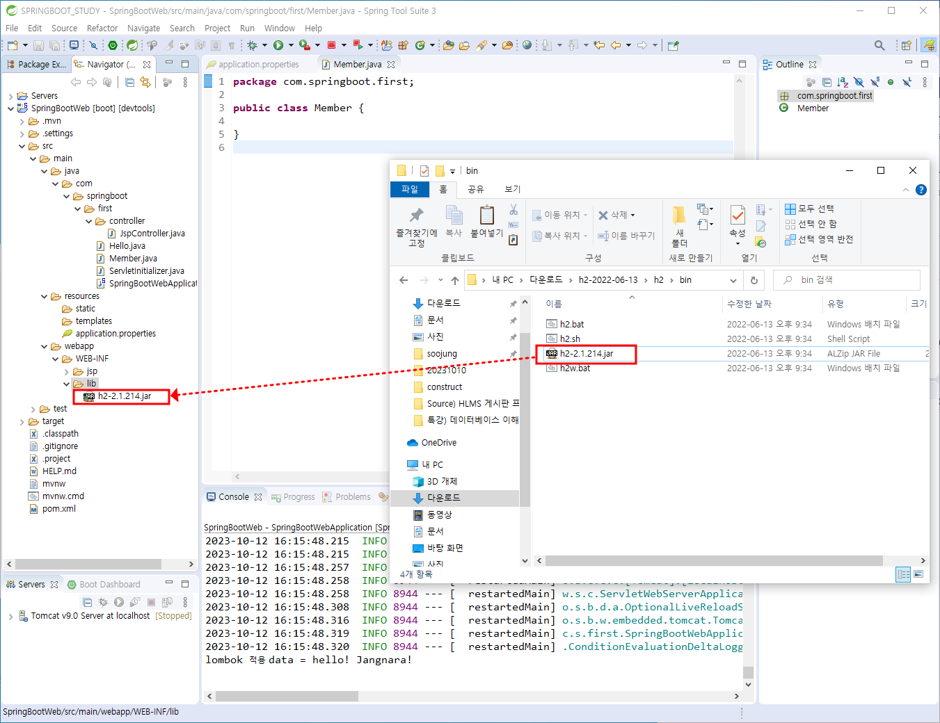 lib 폴더 안에 h2-2.1.214.jar 파일을 넣어줌.