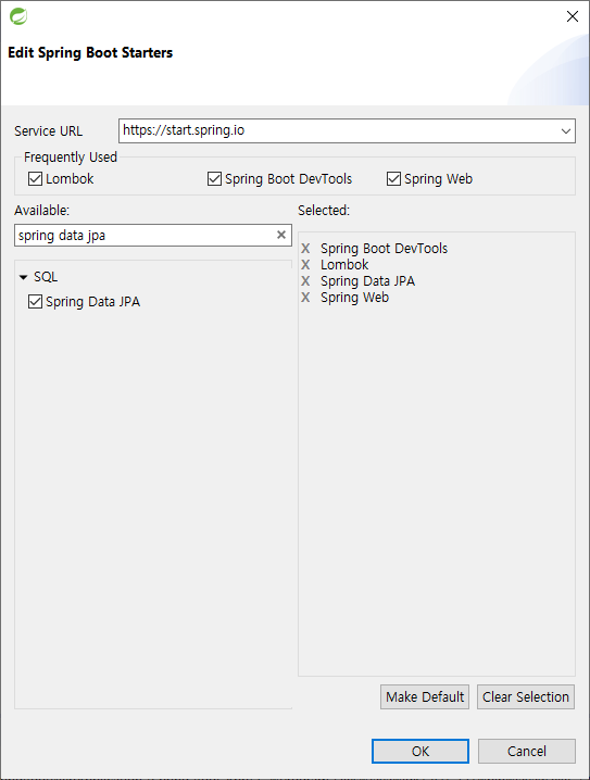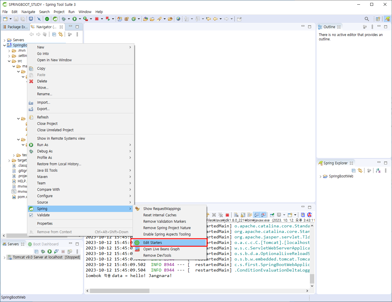 1) SpringBootWeb - 우클릭 - Spring - Edit Starters 클릭