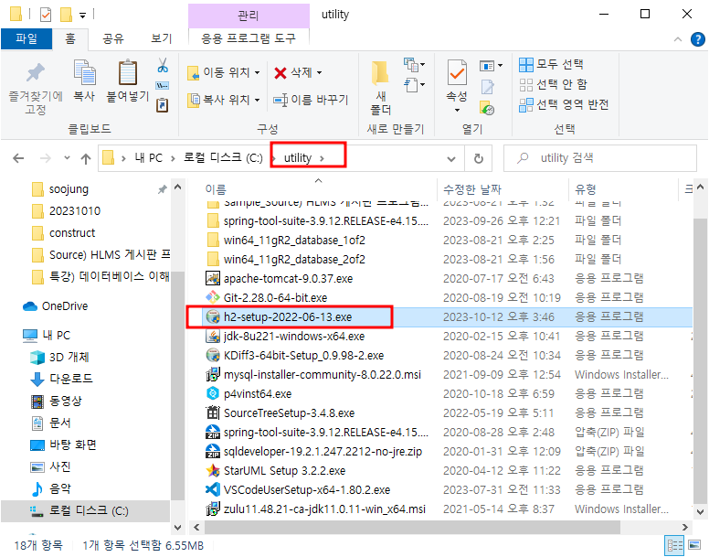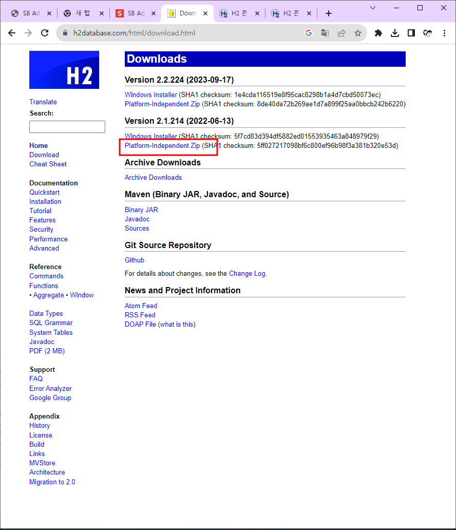 https://www.h2database.com - Windows Installer (6.7 MB) 다운로드 및 설치