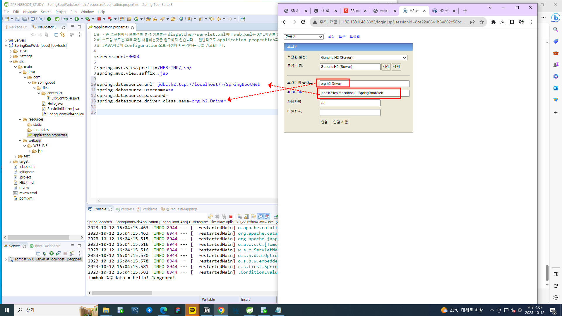 드라이버 클래스: org.h2.Driver, JDBC URL: jdbc:h2:~/SpringBootWeb,