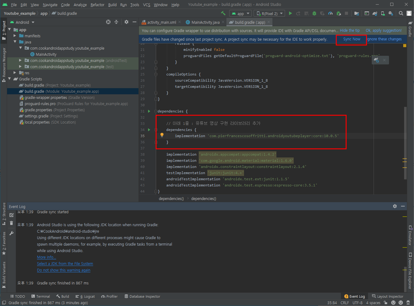 build gradle에 dependencies 추가한다.