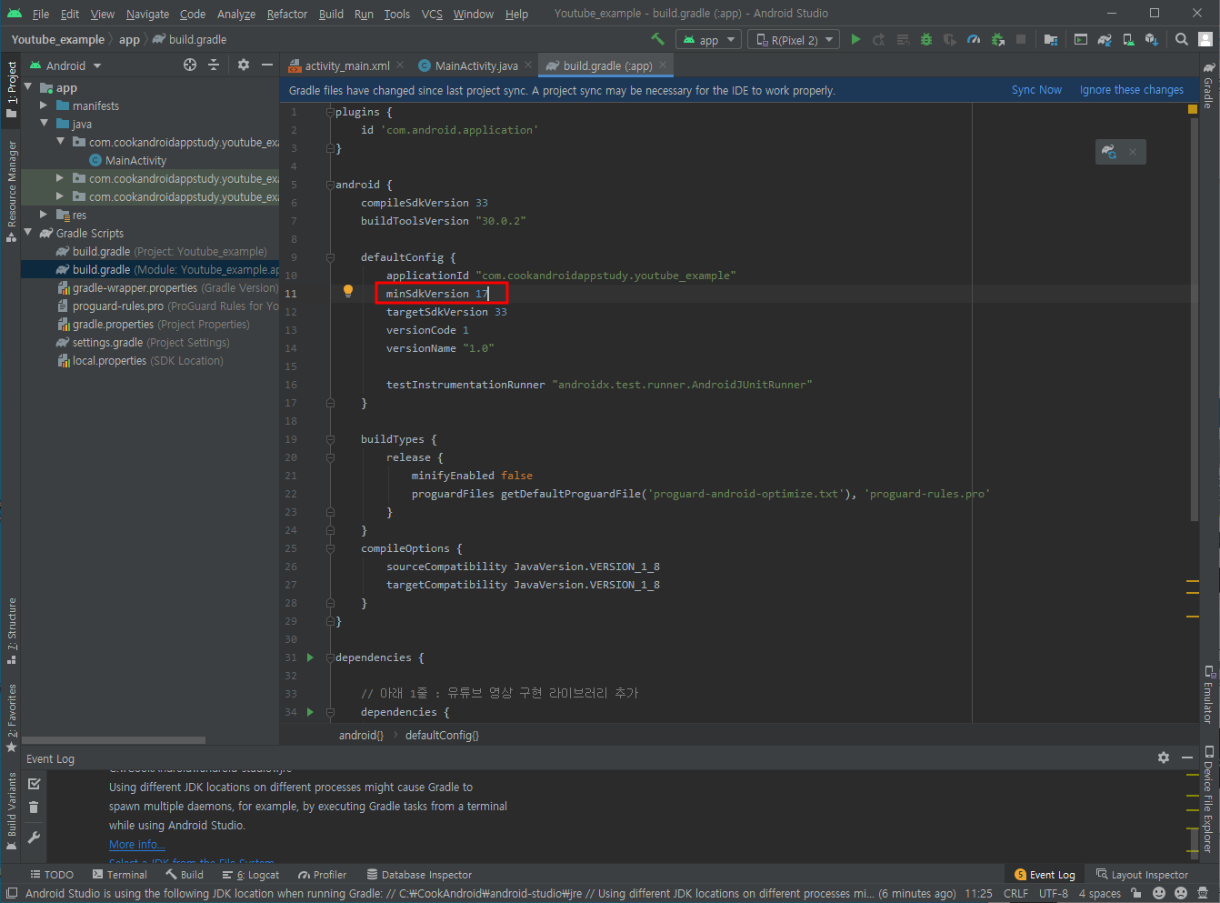 안드로이드 버전 변경 > 코끼리 때려주기!