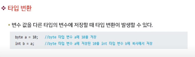 자동타입변환 : 자동으로 타입변환이 일어나는 것