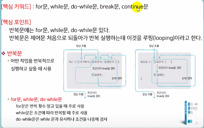 루핑(looping) : 제어문 처음으로 다시 되돌아가 반복 실행