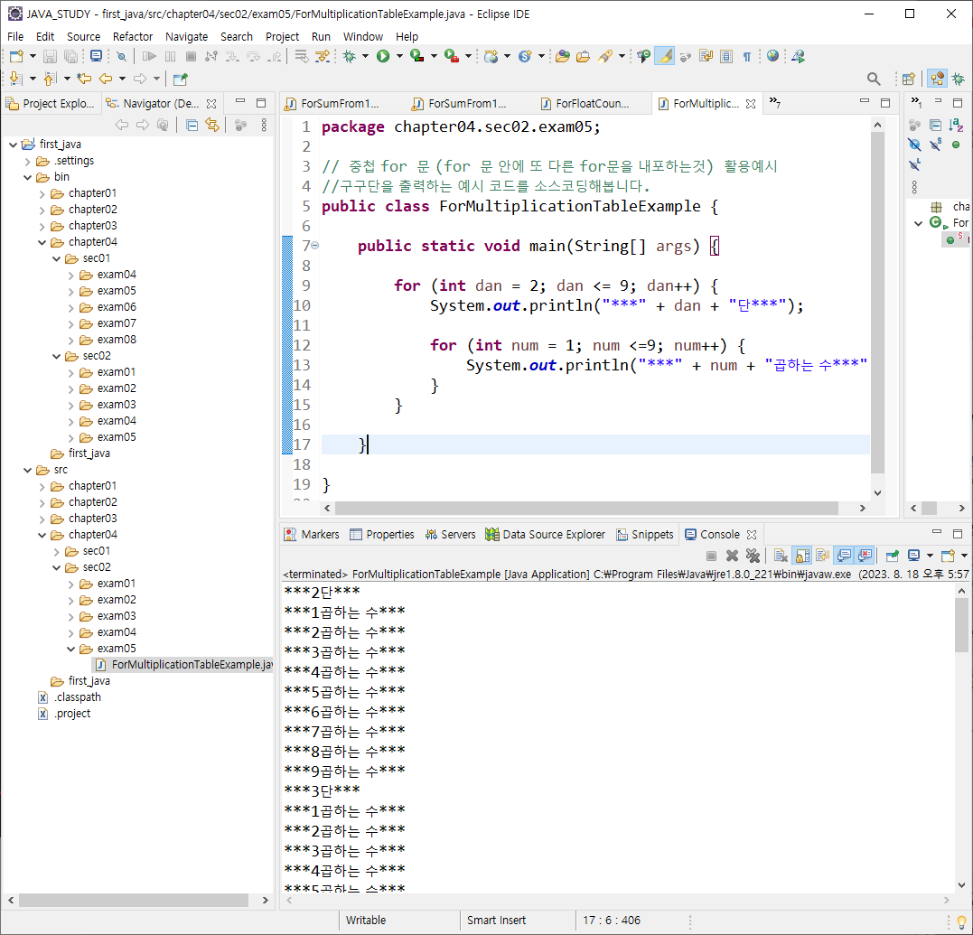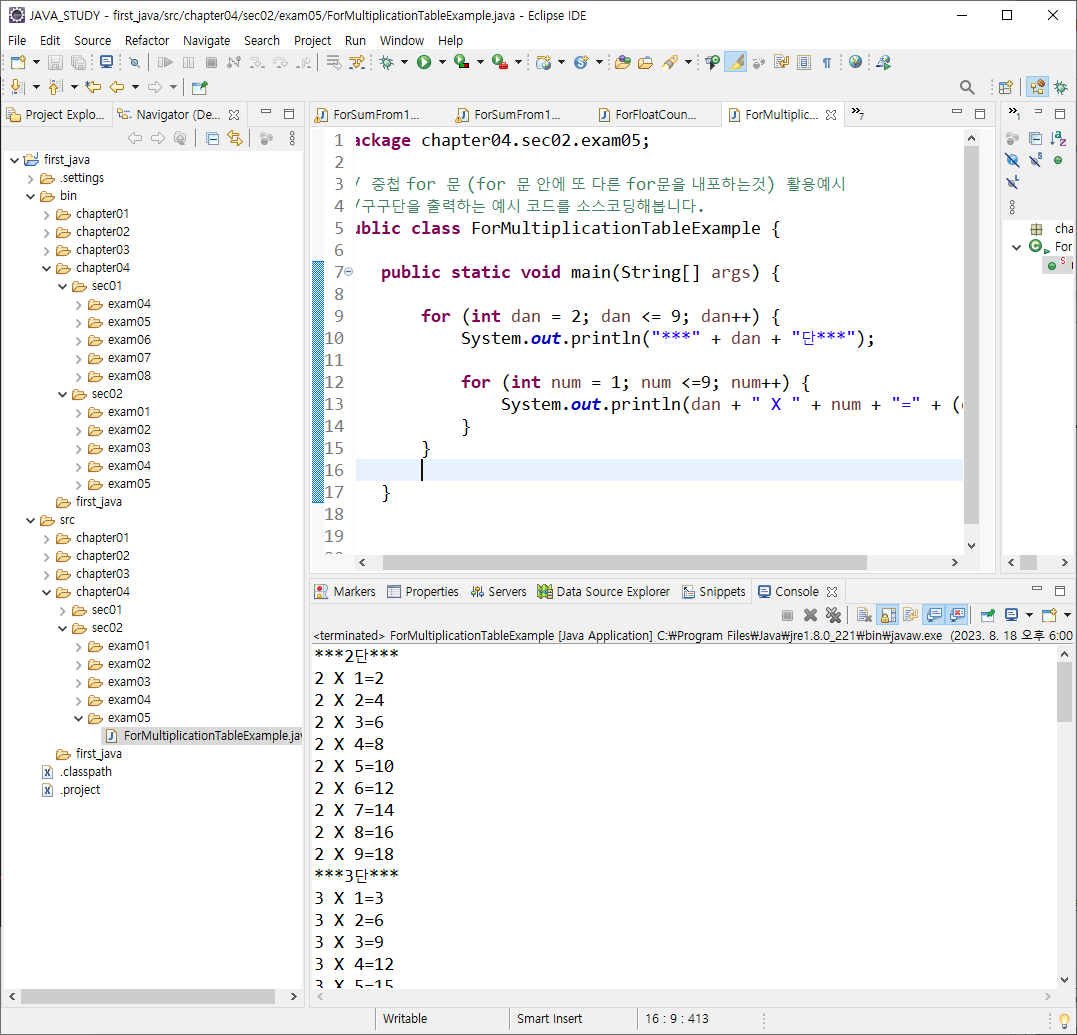 [BACKEND]JAVA_ECLIPSE07 조건문과 반복문 (0) | 2023.08.18 |