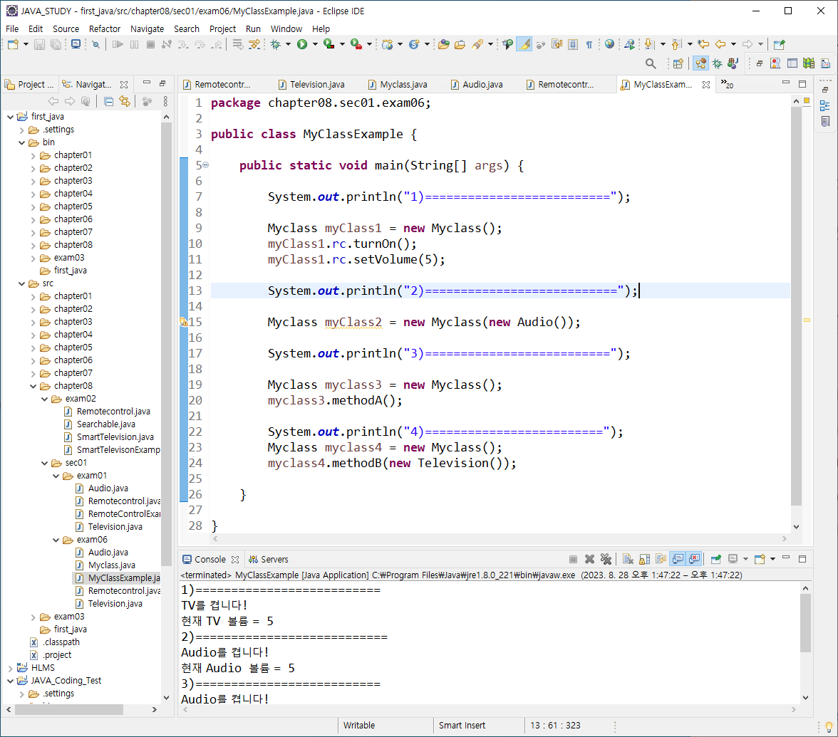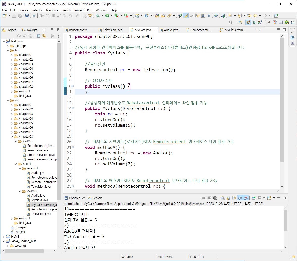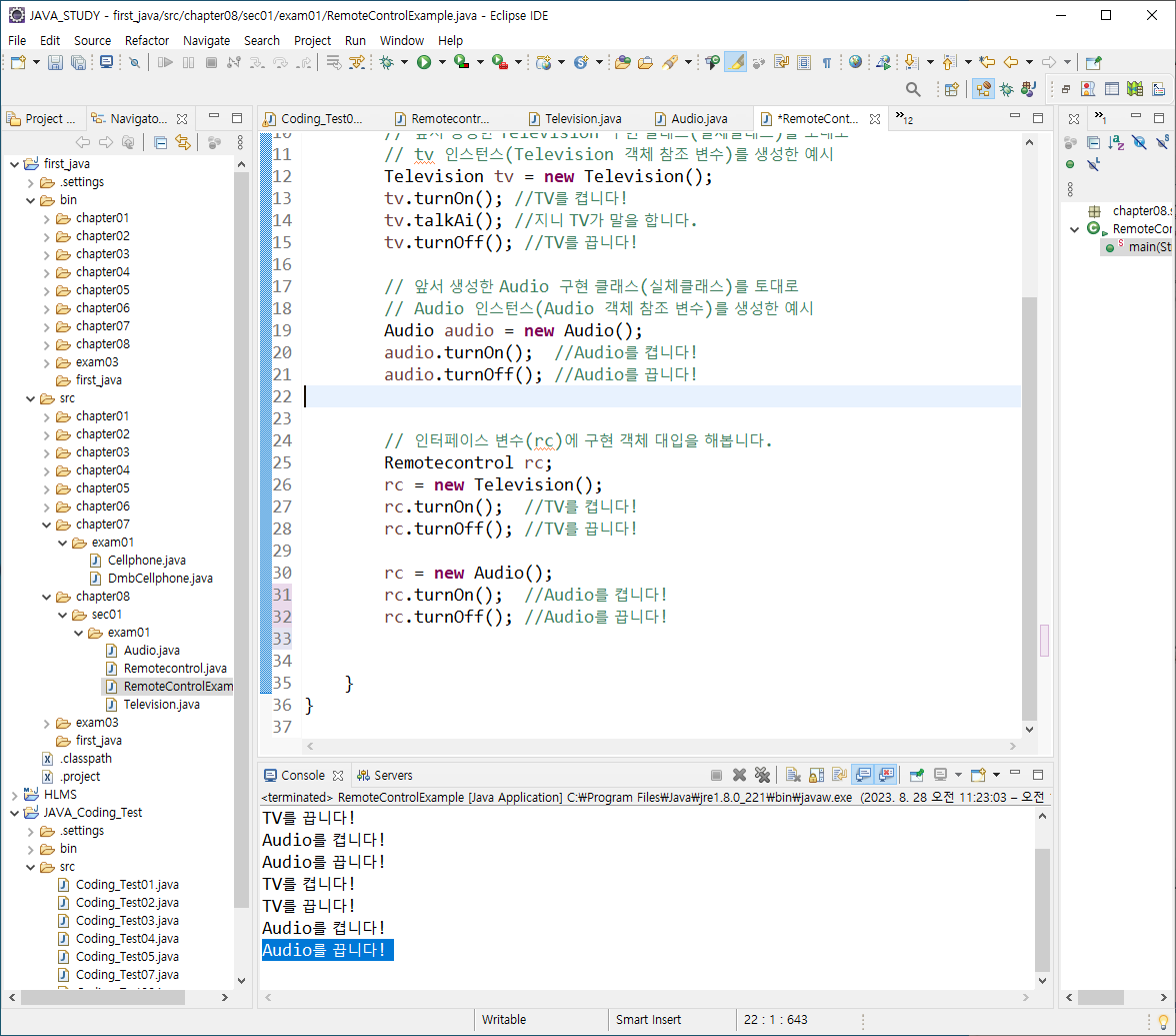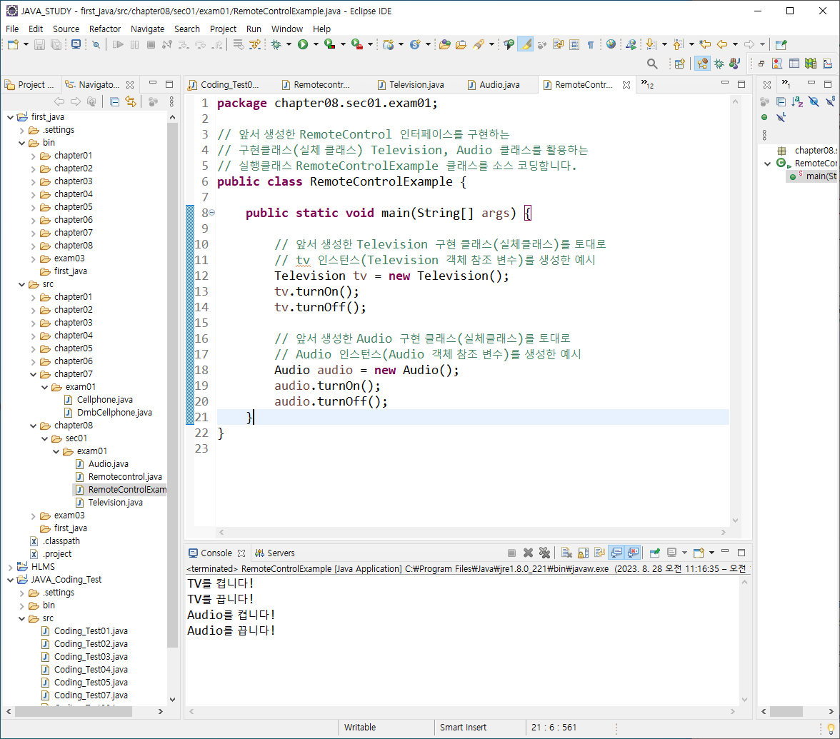 // 실행클래스 RemoteControlExample 클래스를 소스 코딩합니다.