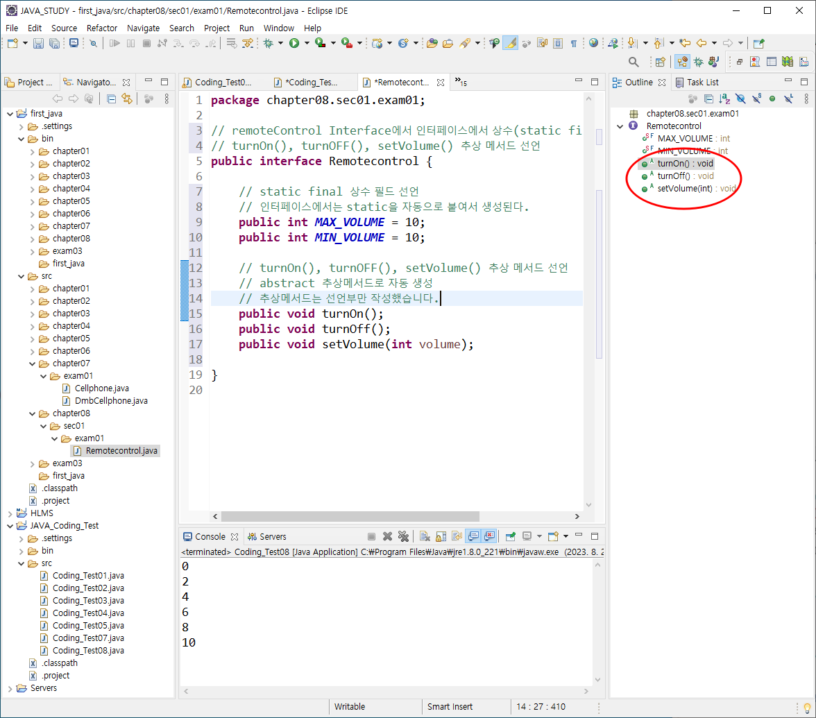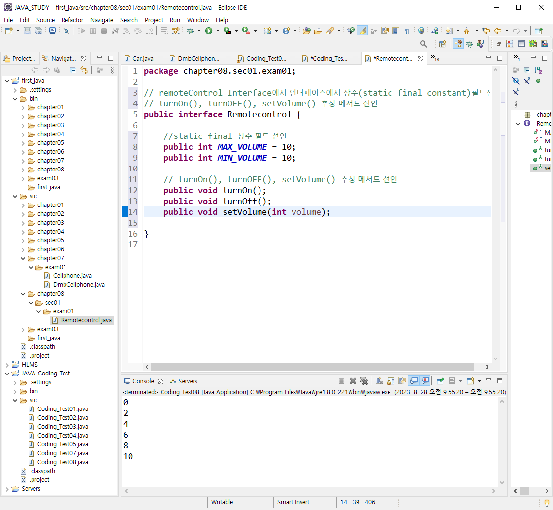 // remoteControl Interface에서 인터페이스에서 상수(static final constant)필드선언
