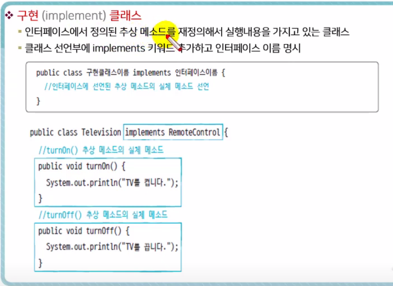 // turnOn() 추상메서드의 실체메서드인 turnOn() 메서드 선언