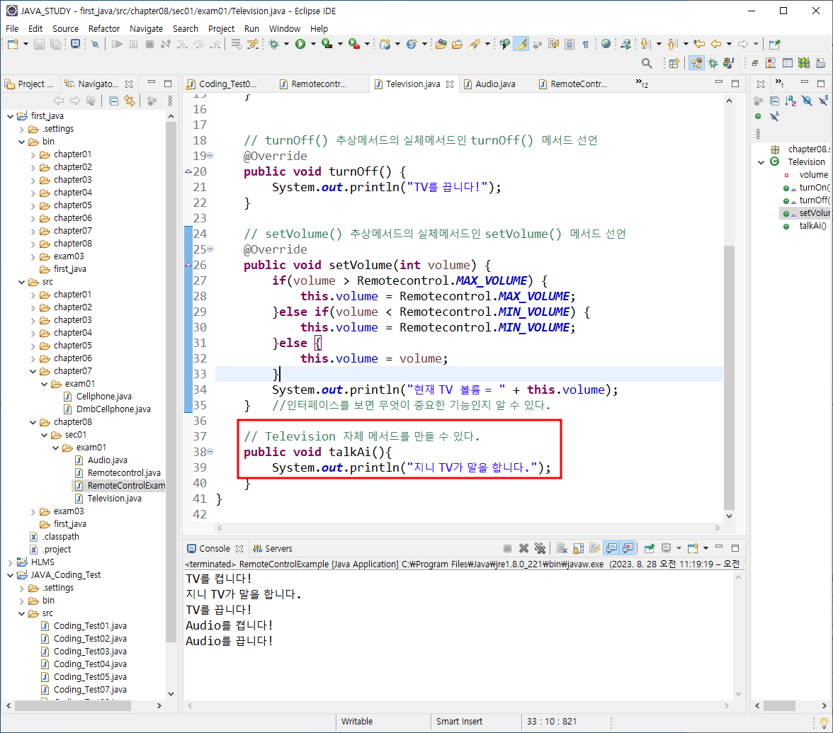 tv.talkAi(); //지니 TV가 말을 합니다.