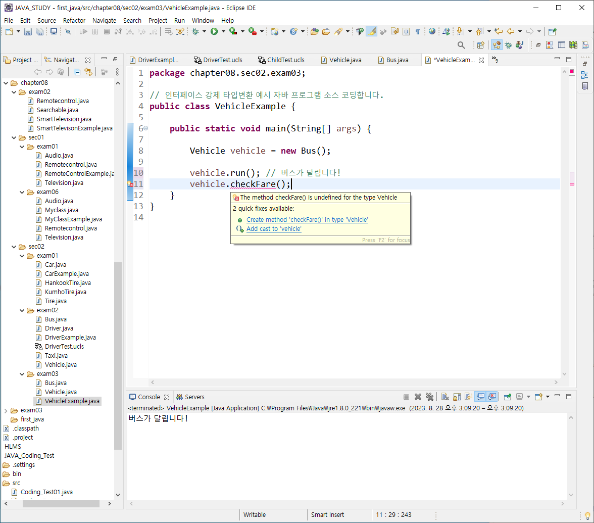 자동타입변환: Vehicle vehicle = bus;