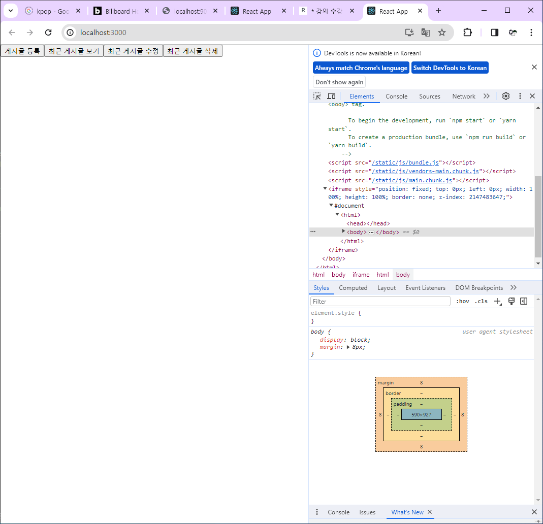 16. 크롬 웹브라우저 실행 - http://localhost:3000/