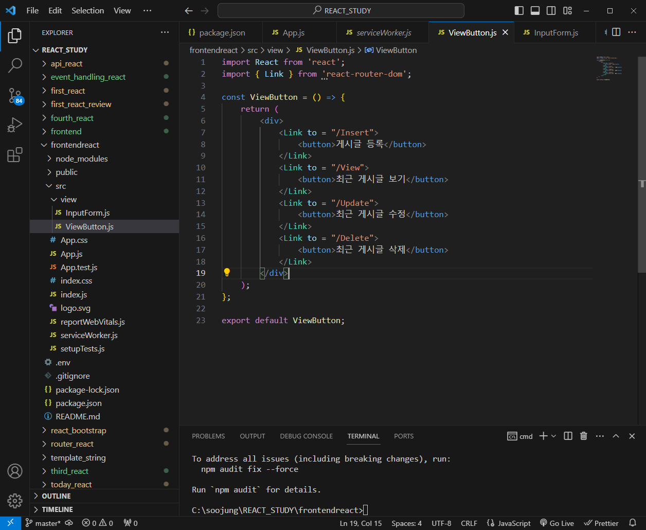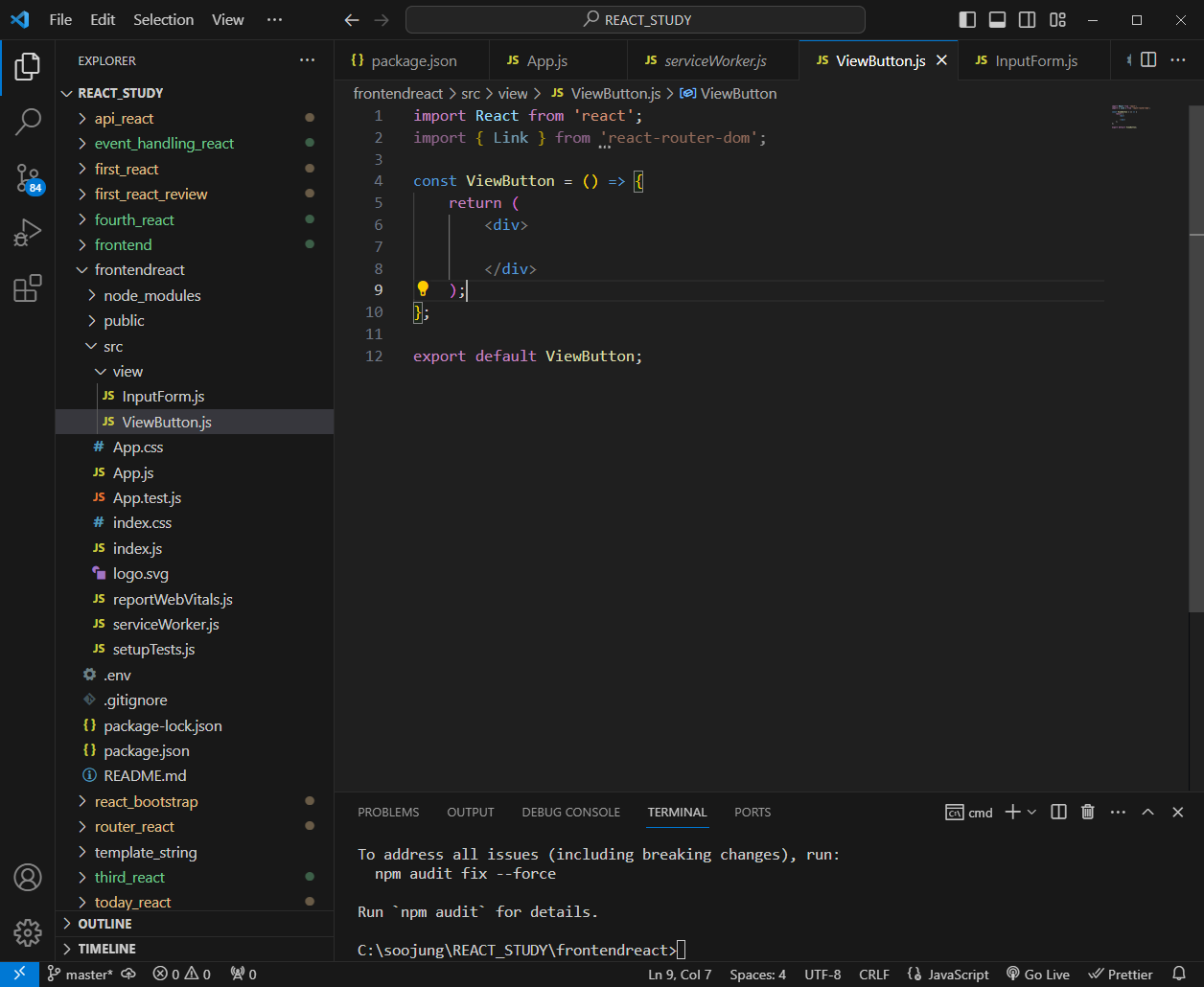8. frontendreact\src폴더 안에 App.js 소스 코딩