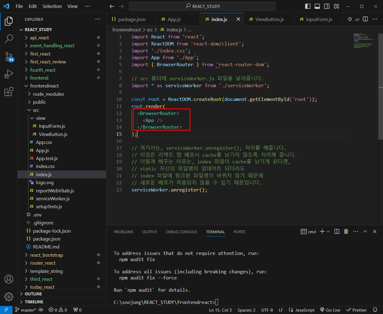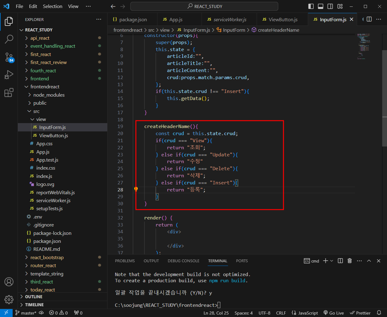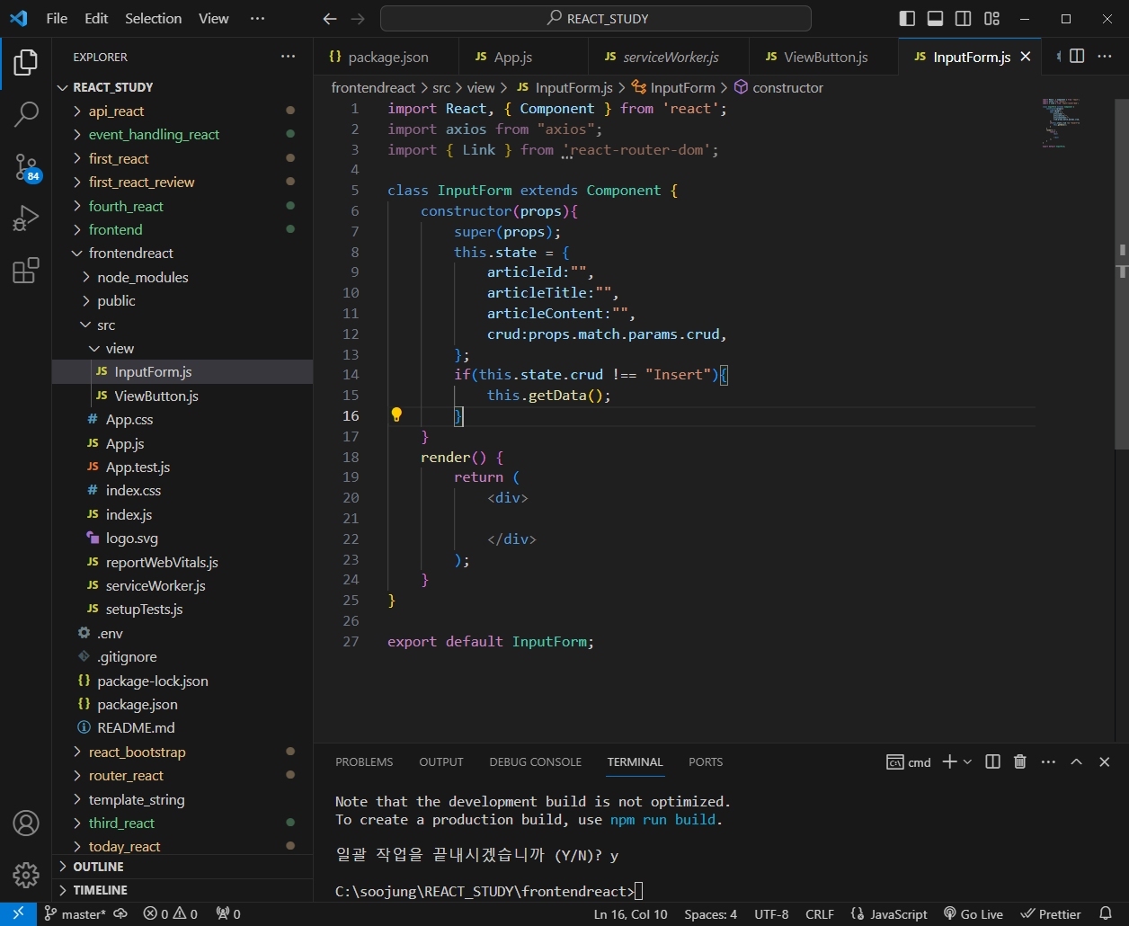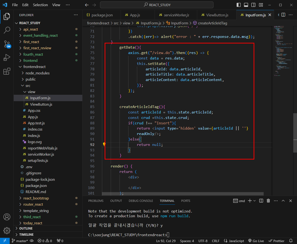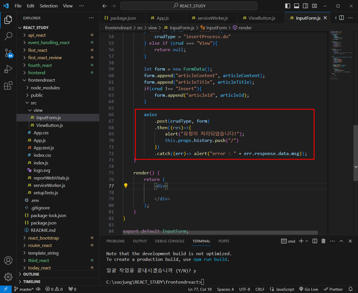 8. frontendreact\src폴더 안에 App.js 소스 코딩