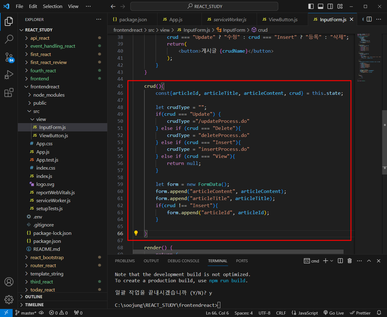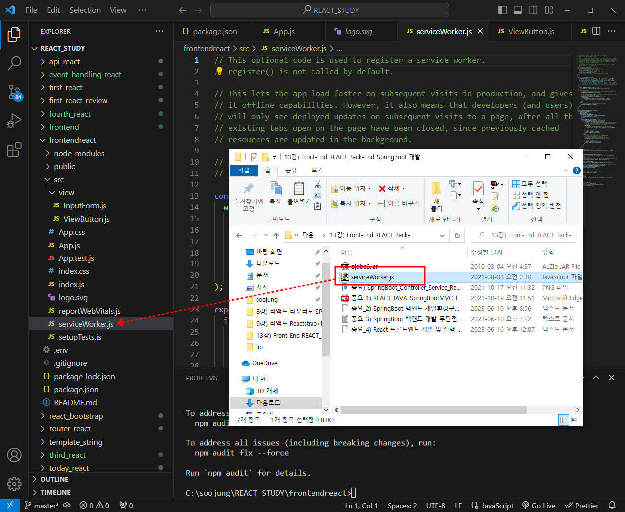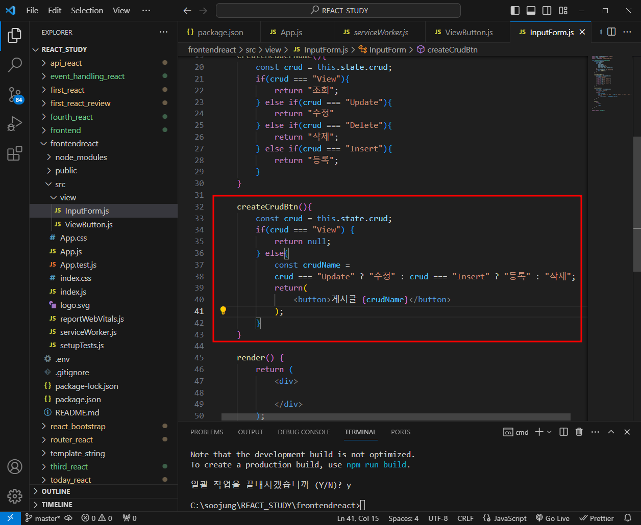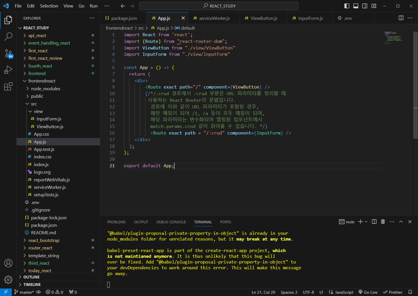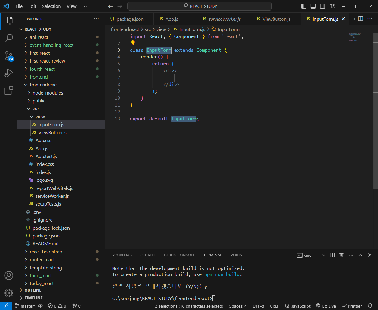 8. frontendreact\src폴더 안에 App.js 소스 코딩