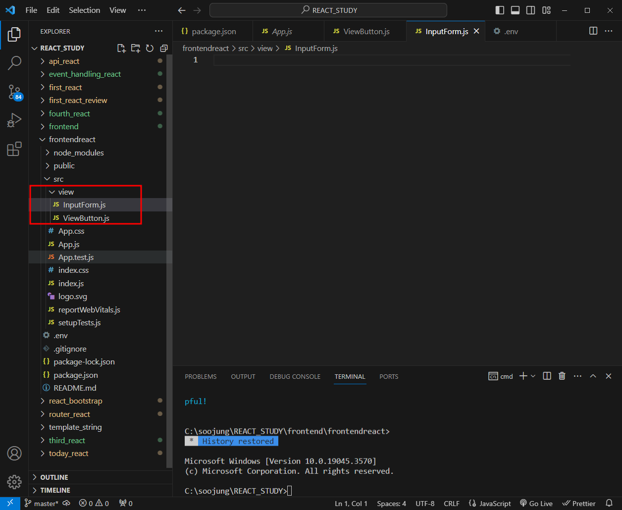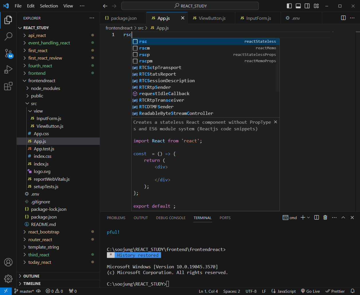 frontendreact 앱 프로젝트 생성은 create-react-app를 활용해서 설치합니다.