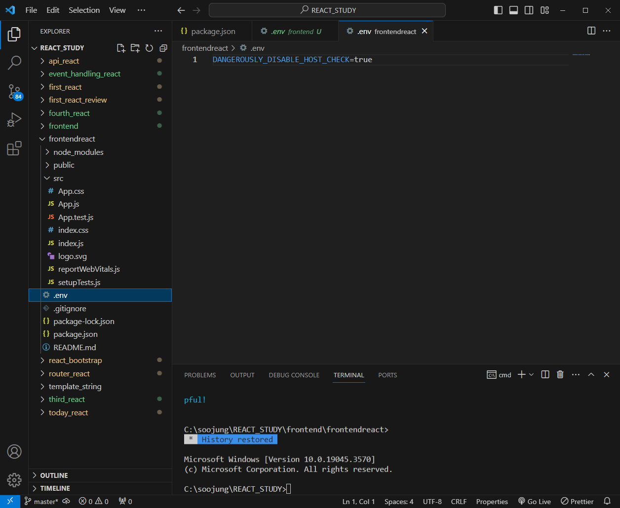 [중요] 리액트 앱 프로젝트에 .env 파일 생성 후 다음의 구문을 추가해 줍니다.