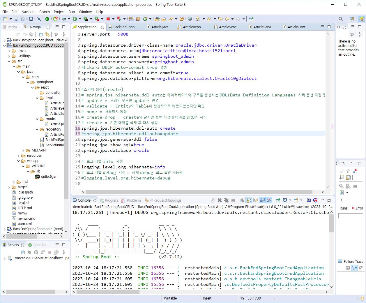 17. OracleDB sqlplus 활용 springboot_crud 테이블과 데이터 등록 정보를 확인합니다.