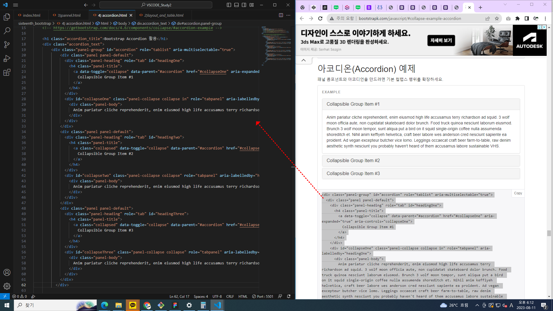 <h1 class="accordion_title">Bootstrap Accordion 활용</h1>