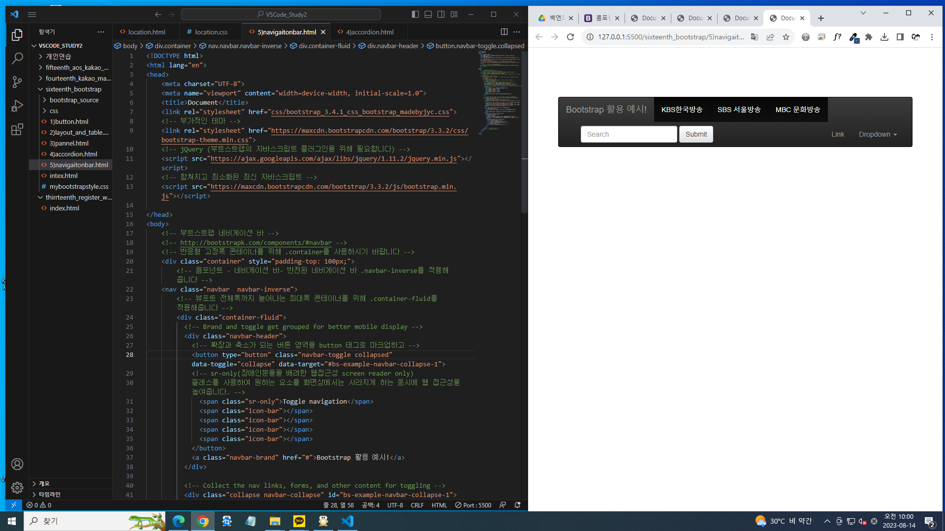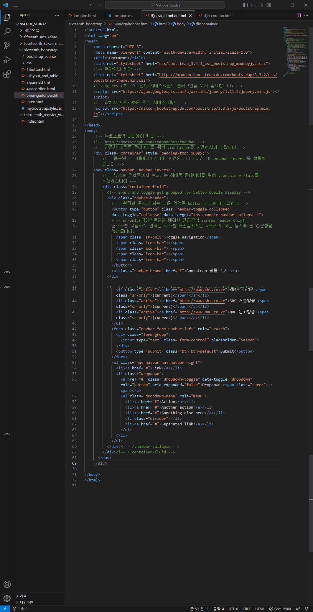 <!-- 콤포넌트 - 네비게이션 바- 반전된 네비게이션 바 .navbar-inverse를 적용해 줍니다 -->