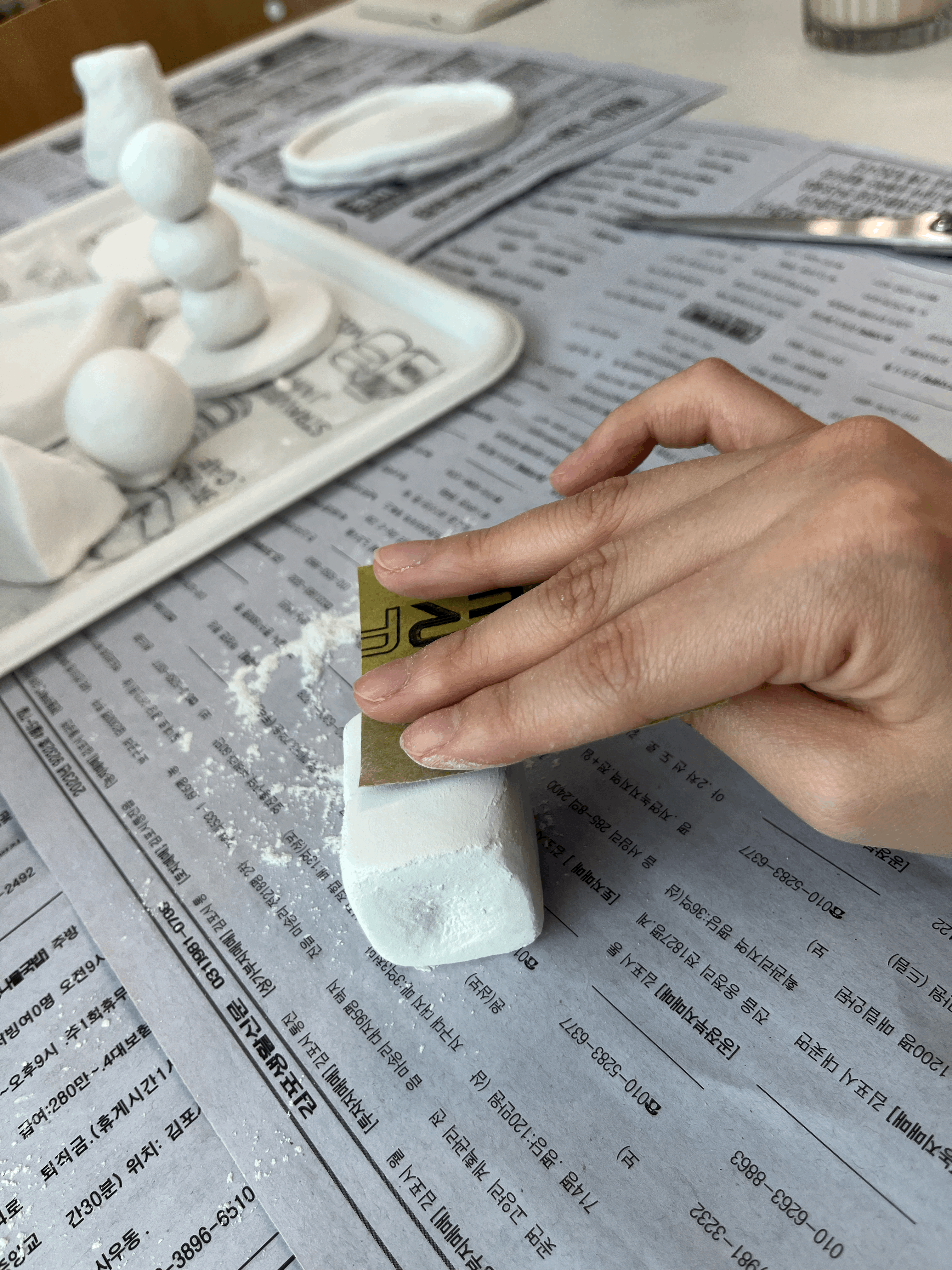 사포로 지점토의 표면을 매끄럽게 해줍니다.