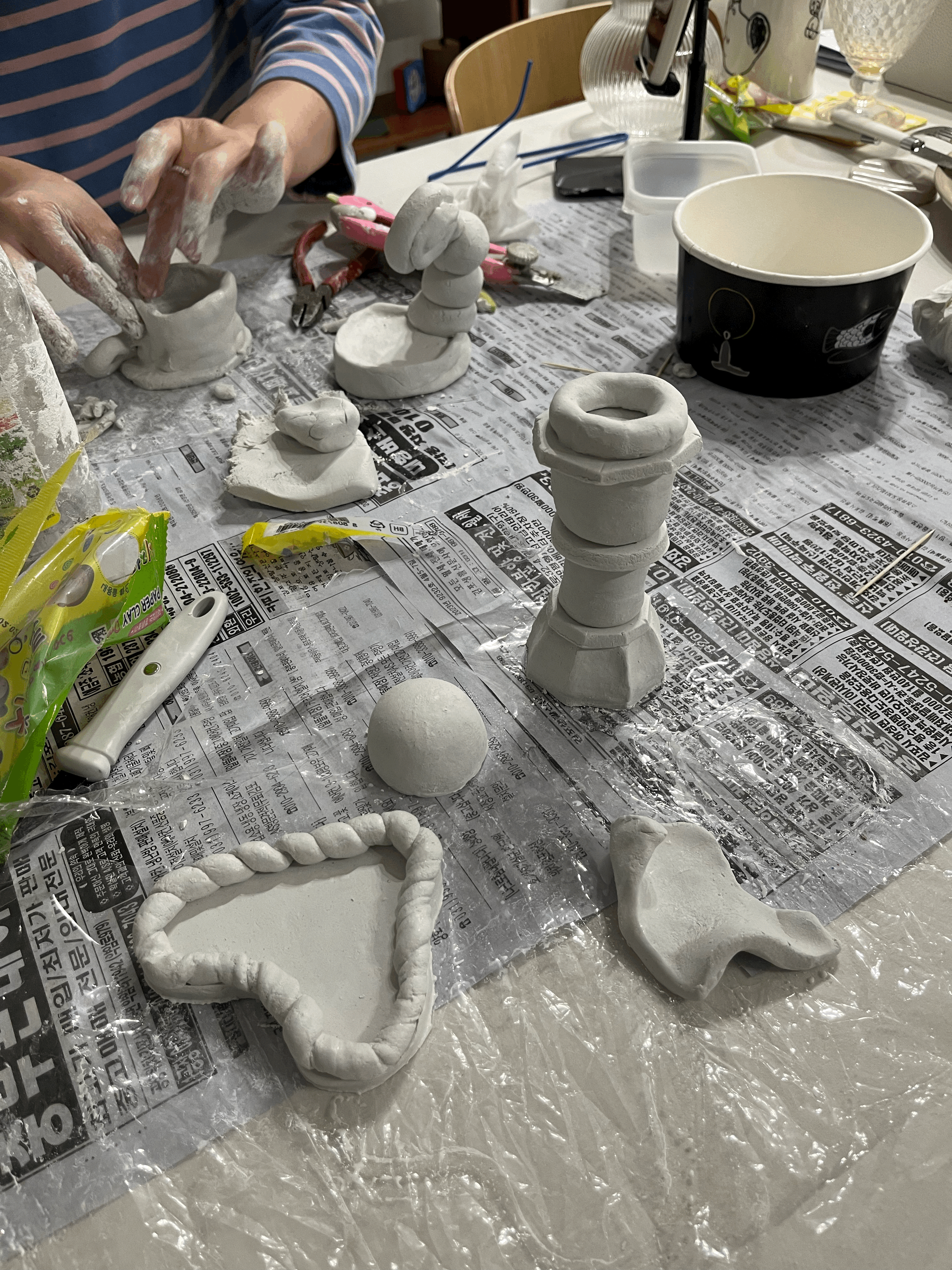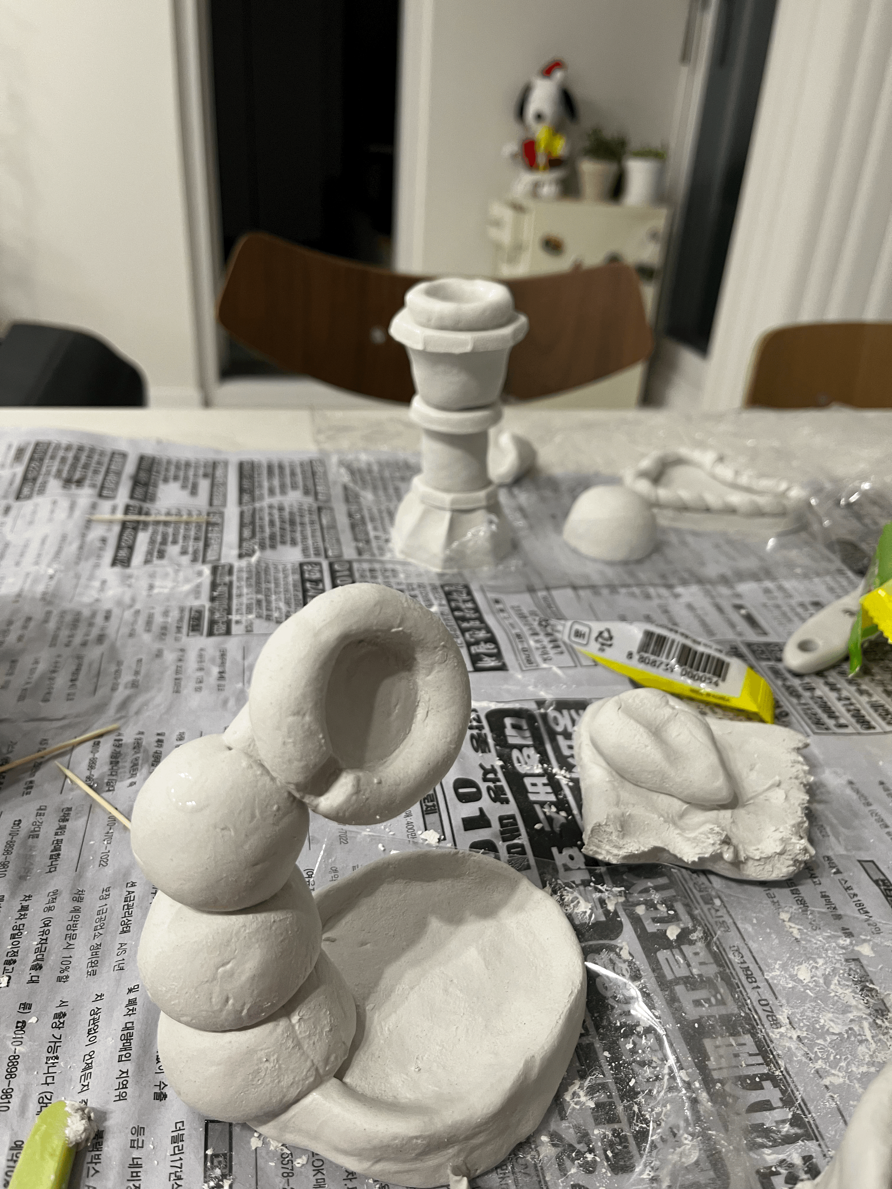 원래 지점토 5개로 만들었는데 욕심이 생겨서 중간에 다이소가서 6개 더 사왔어요..