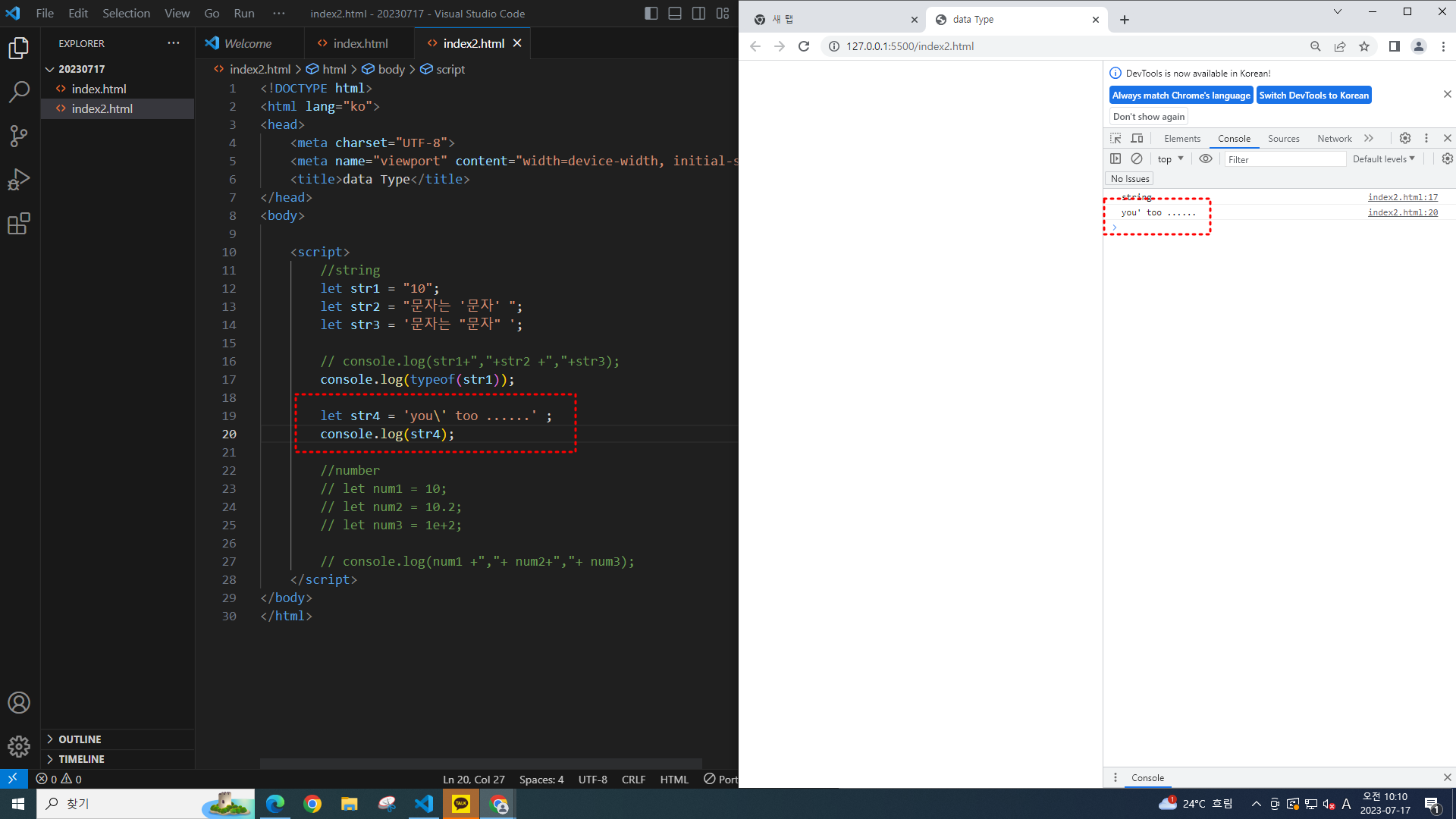 큰따옴표안에 있을 경우 무조건 문자로 인식함