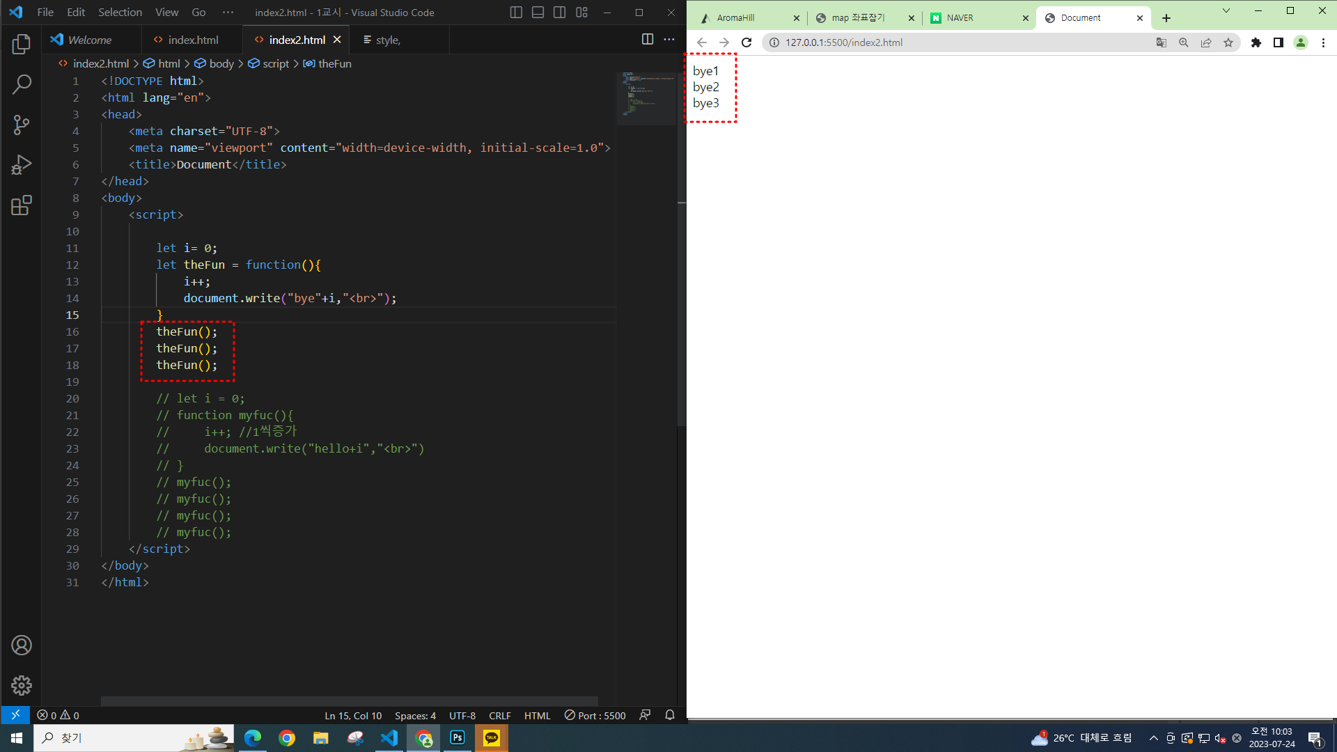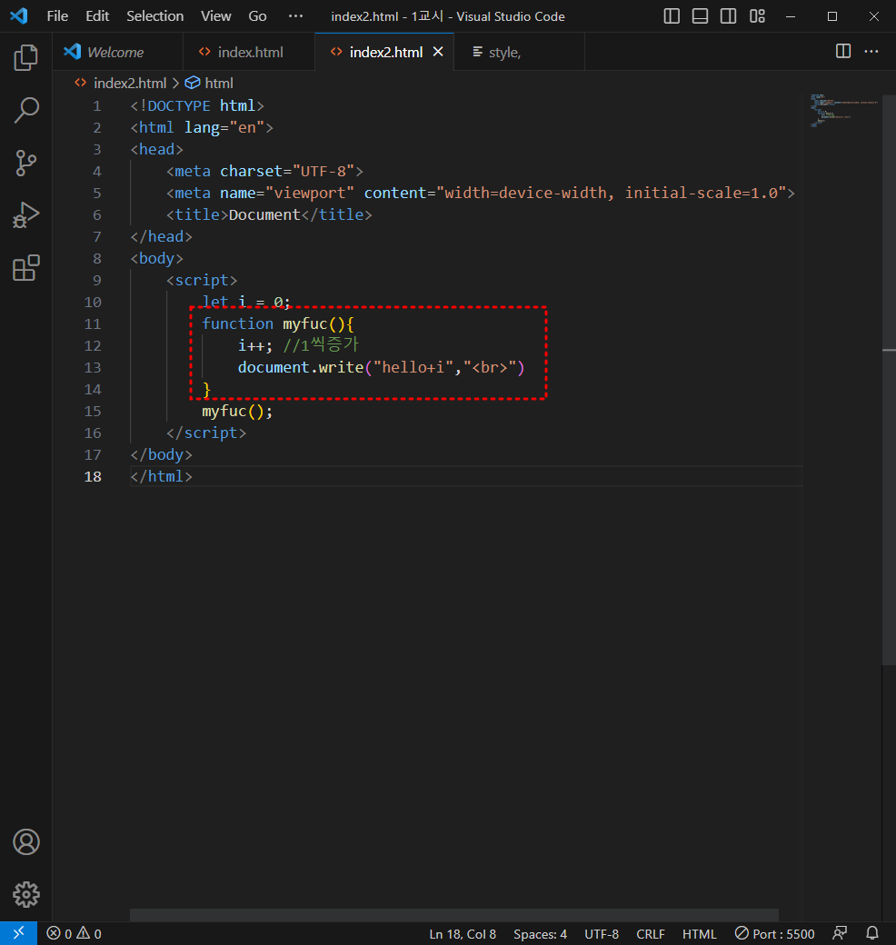 함수를 만들고 함수 변수이름을 밑에다가 써야 화면에 출력된다.