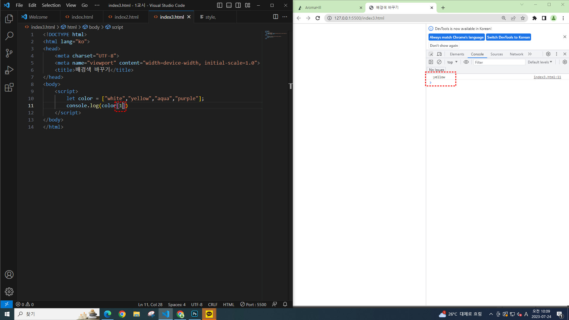 console에서 보면 숫자대로 컬러이름이 나온다.