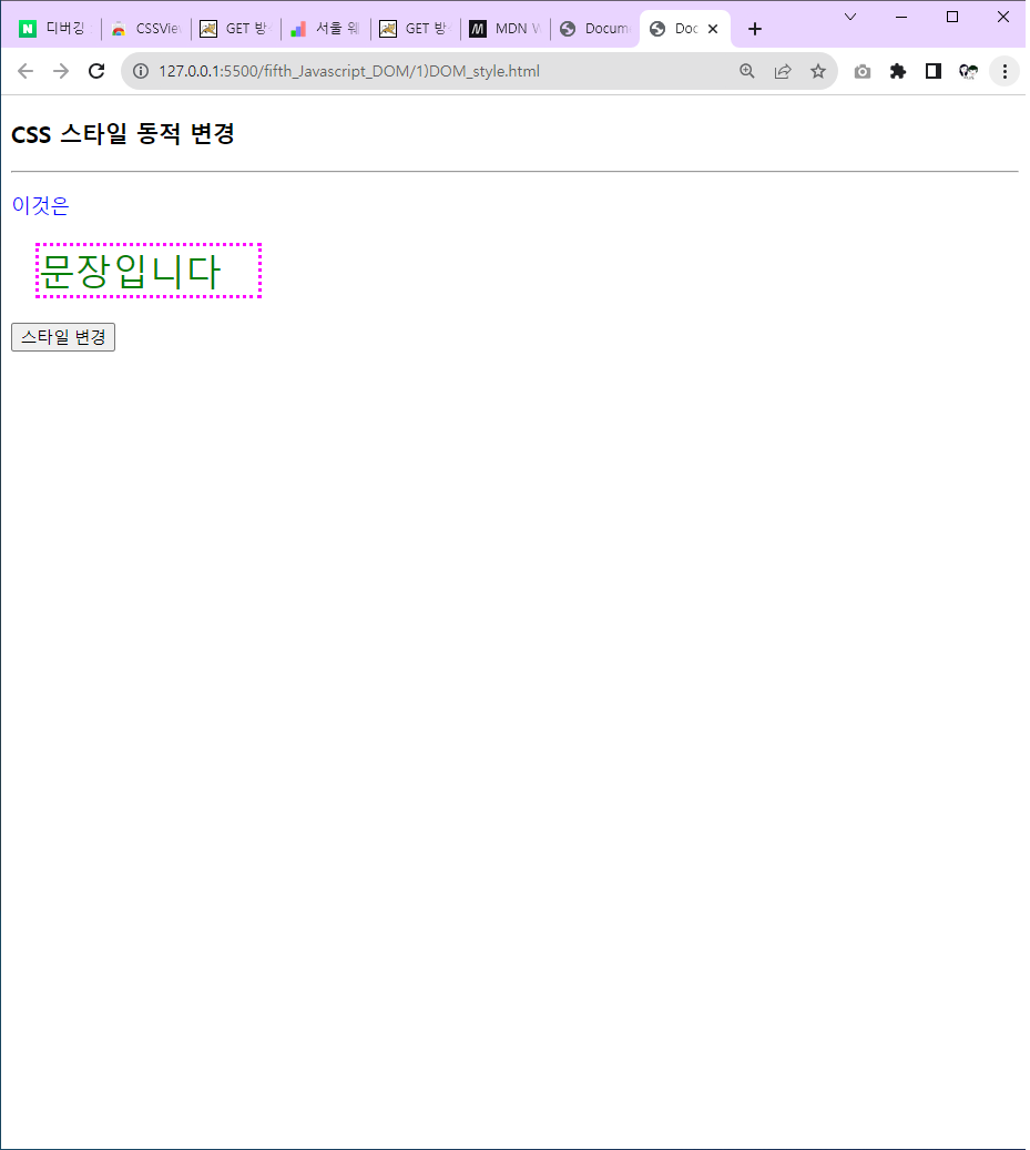 <p style="color: blue;">이것은<span id="mySpan" style="color: red;">문장입니다</span> </p>