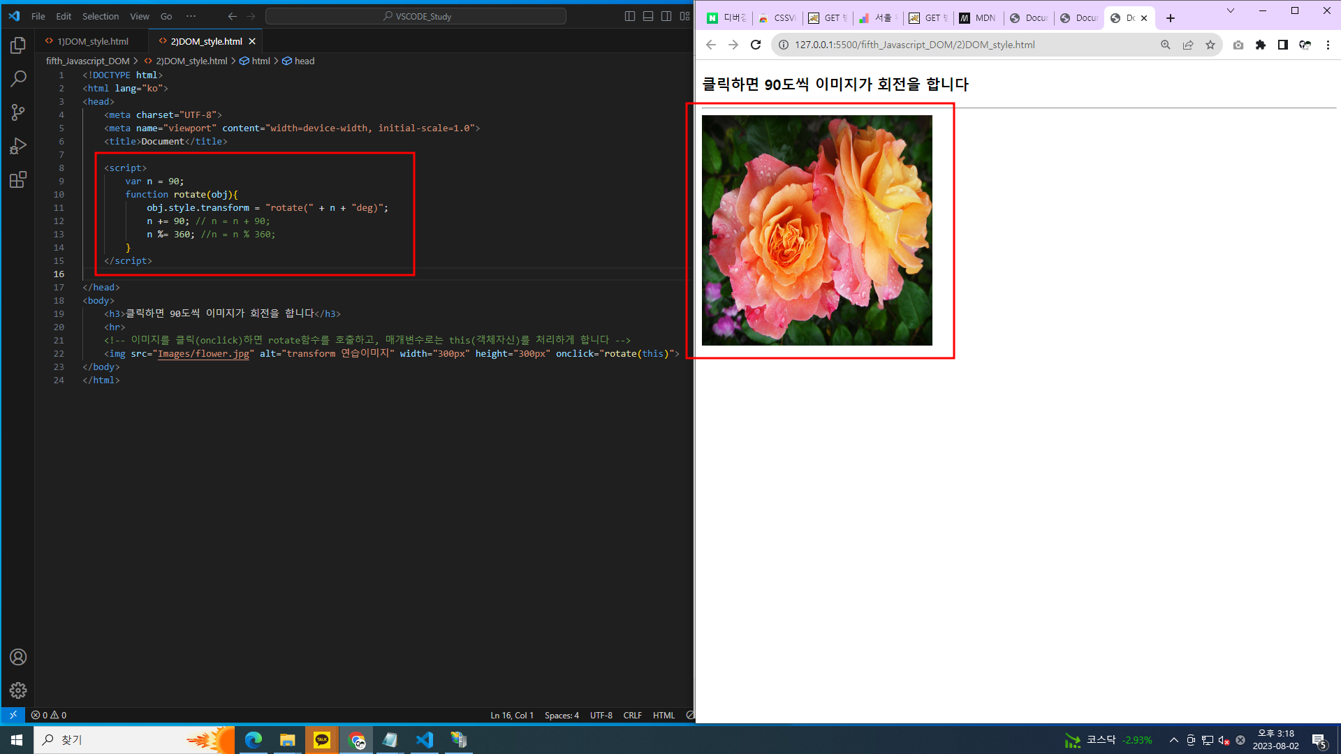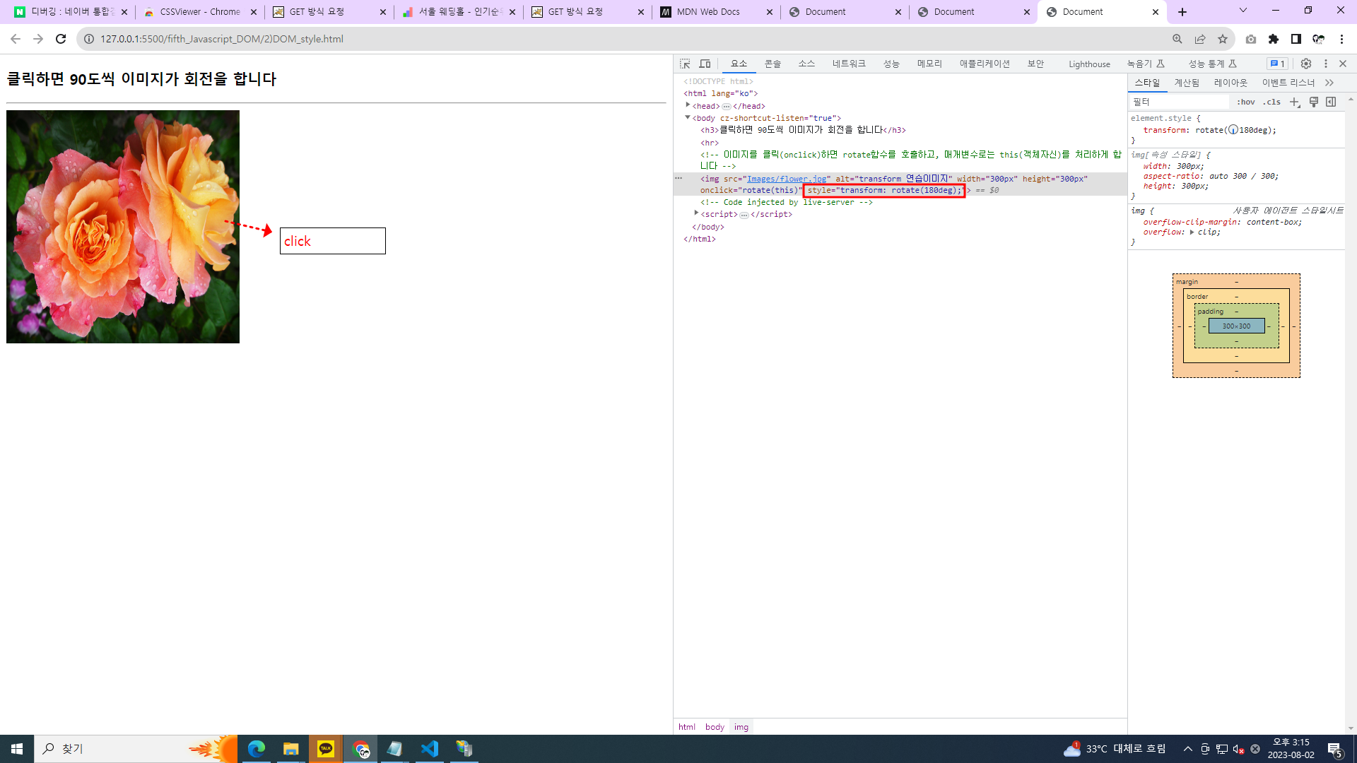 클릭을 하면 style="transform: rotate(90deg);" 이 클릭할수록 90도씩 누적되고 360도가 되면 0이 된다.