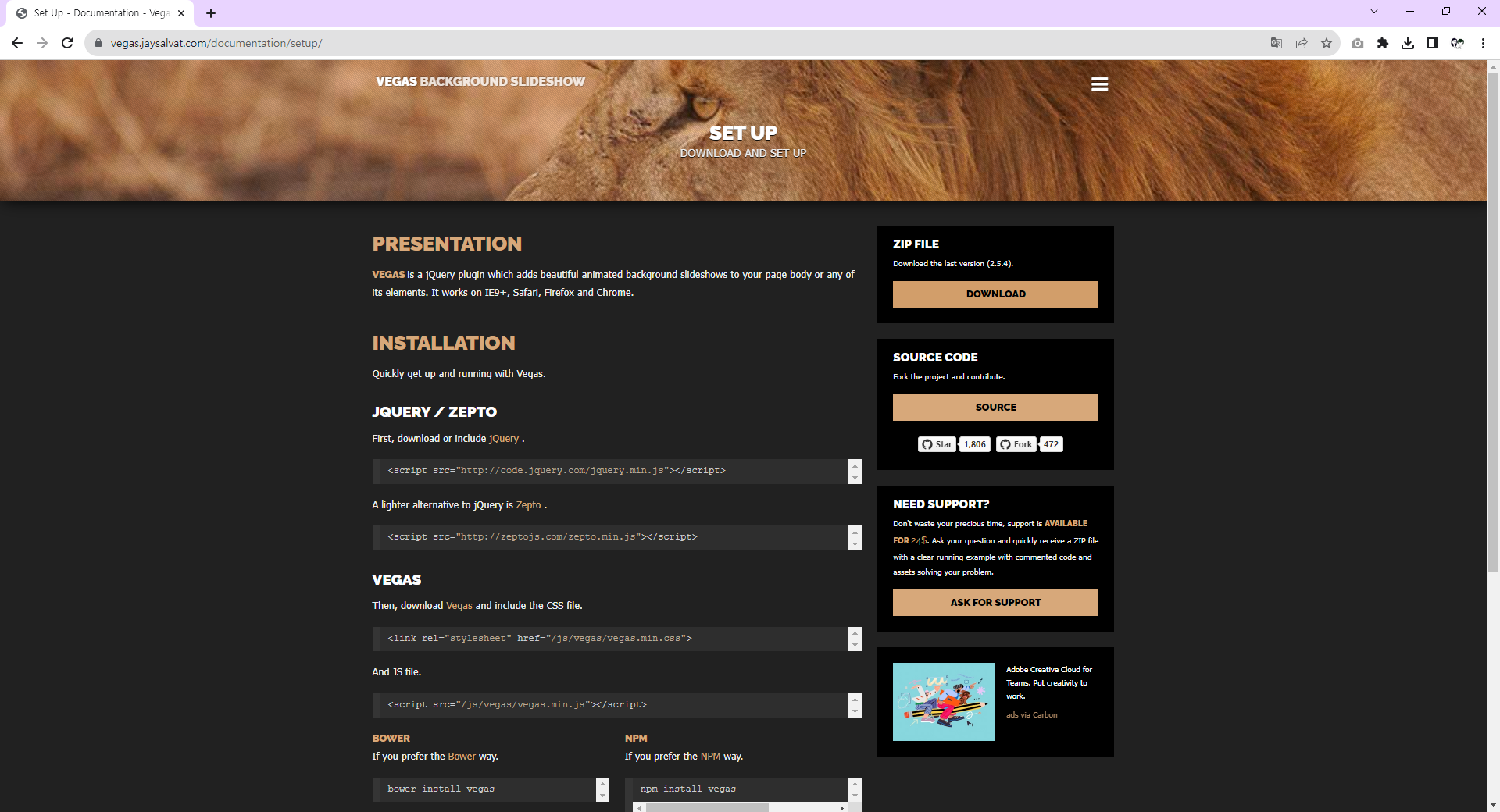 1) Vegas 플러그인 : jQuery 파일(jquery.js 파일 또는 jquery.min.js 파일도 필요함)