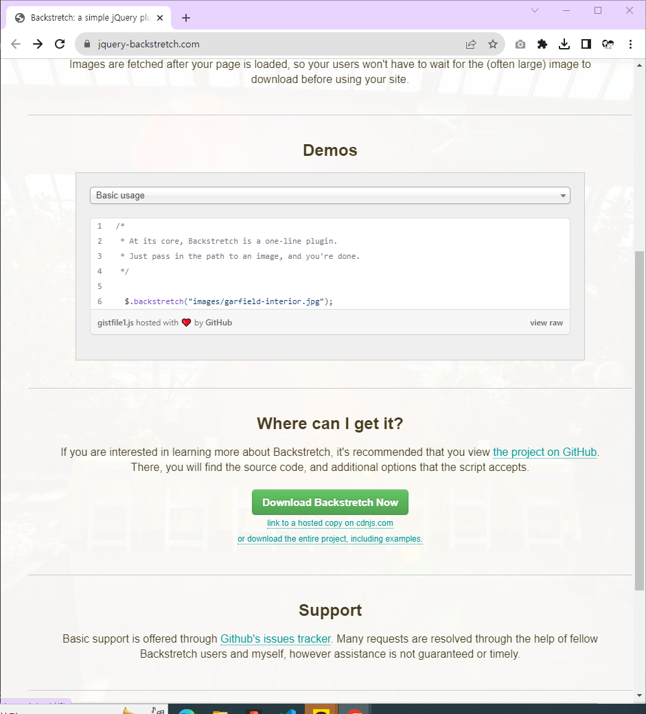 1) Backstretch.js 플러그인 : jQuery 파일(jquery.js 파일 또는 jquery.min.js 파일도 필요함)