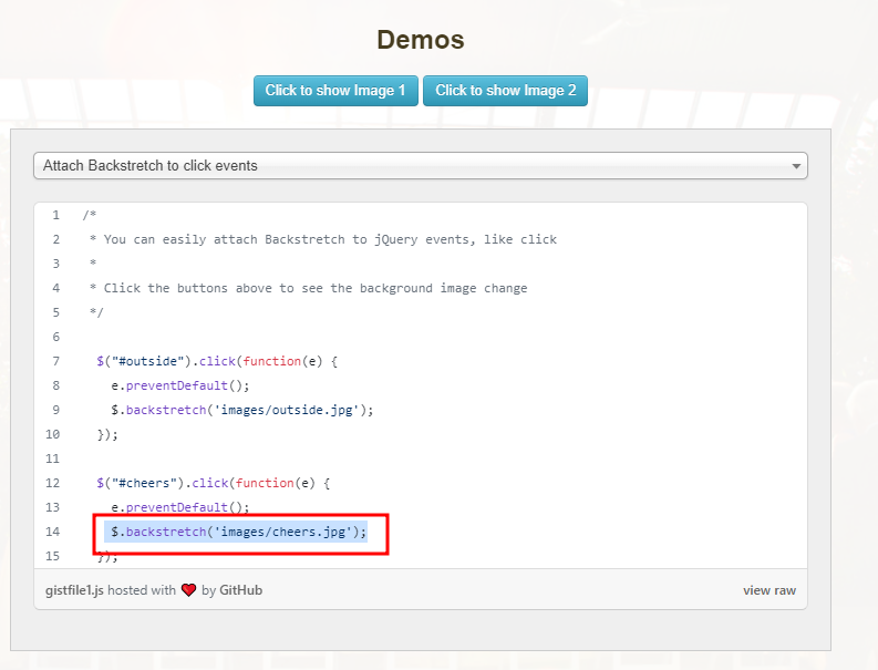 2) backstretch.min.js 파일을 웹 문서 포함 후 $.backstretch() 메서드를 활용함.