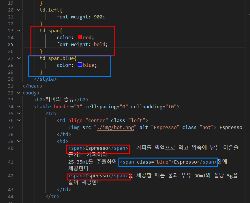 span: 특정 영역에 class(이름)을 부여하여 각각의 효과를 적용할 수 있음