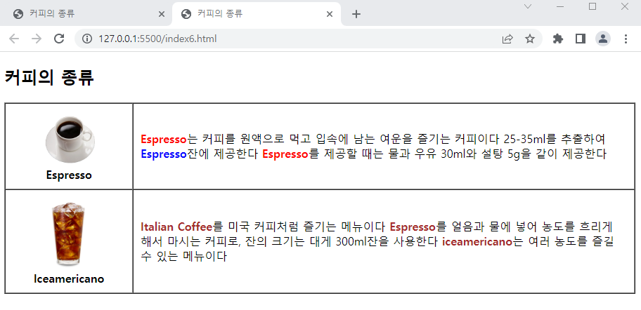 cellspaceing="0": 테두리 두줄로 되어있는 걸 한줄로 합쳐줌