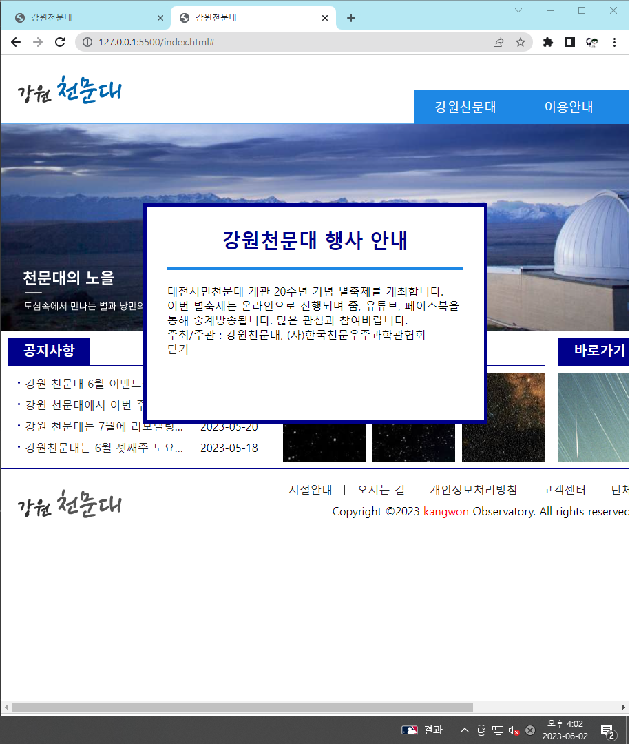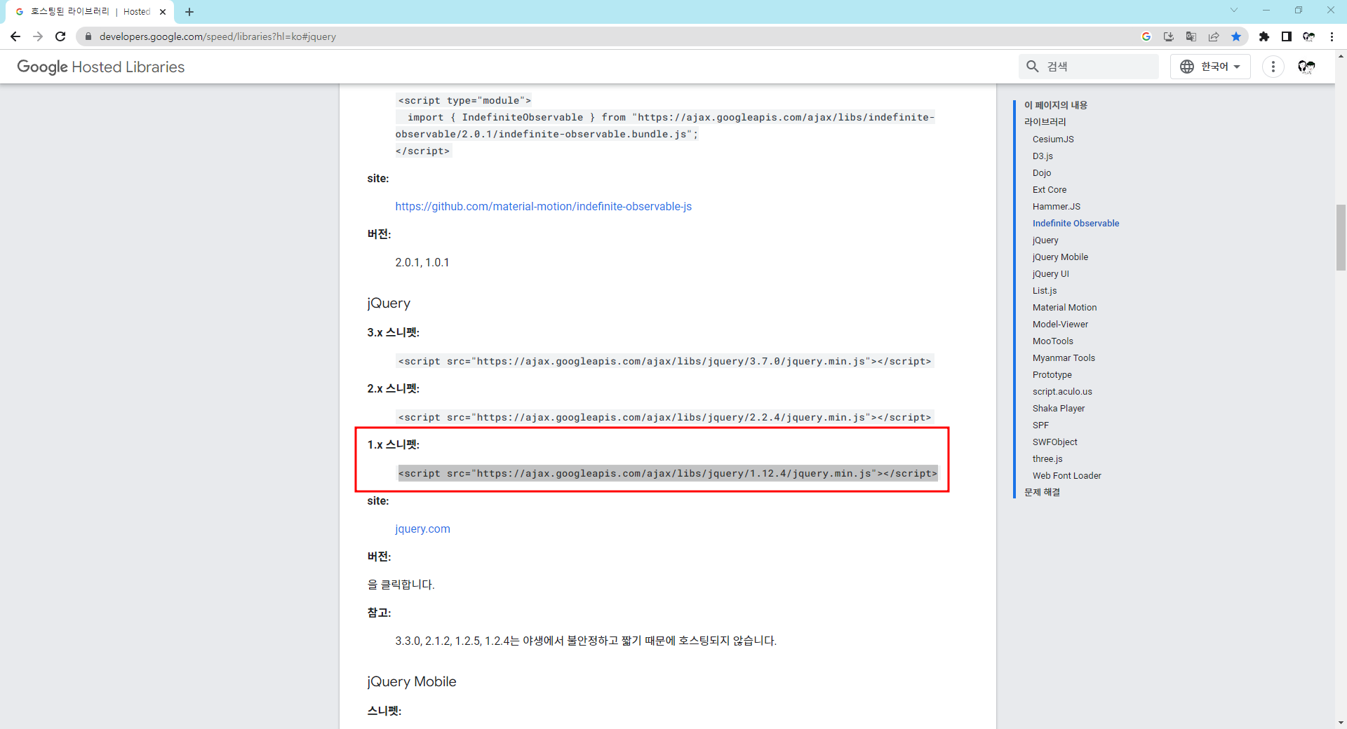 구글에 제이쿼리 검색 후 제이쿼리 다운로드 > google cdn > 스니펫 복사 > footer 밑에 붙여넣기