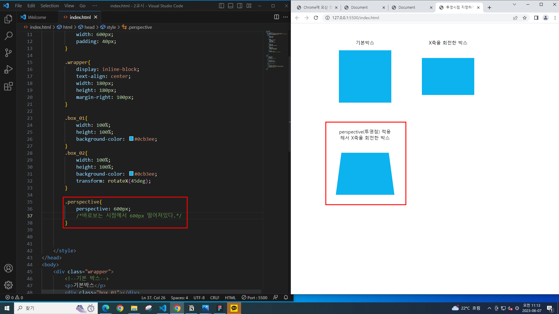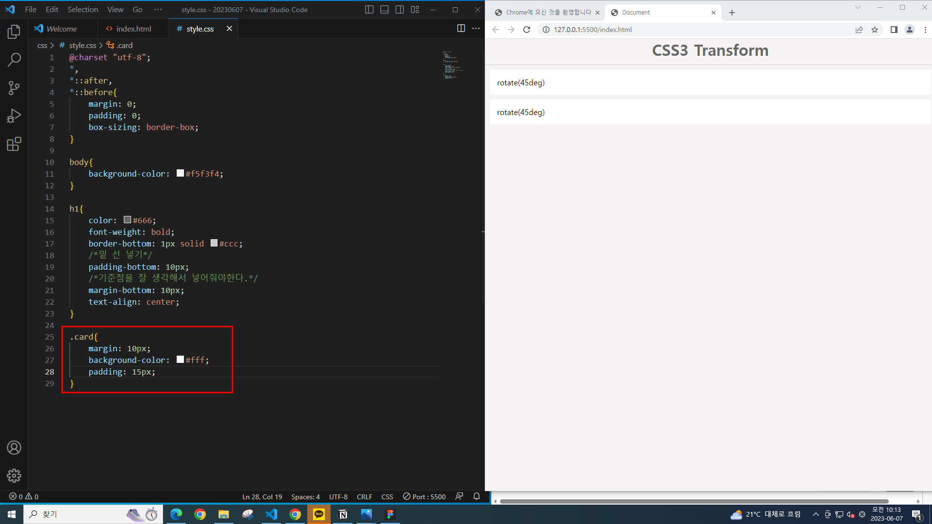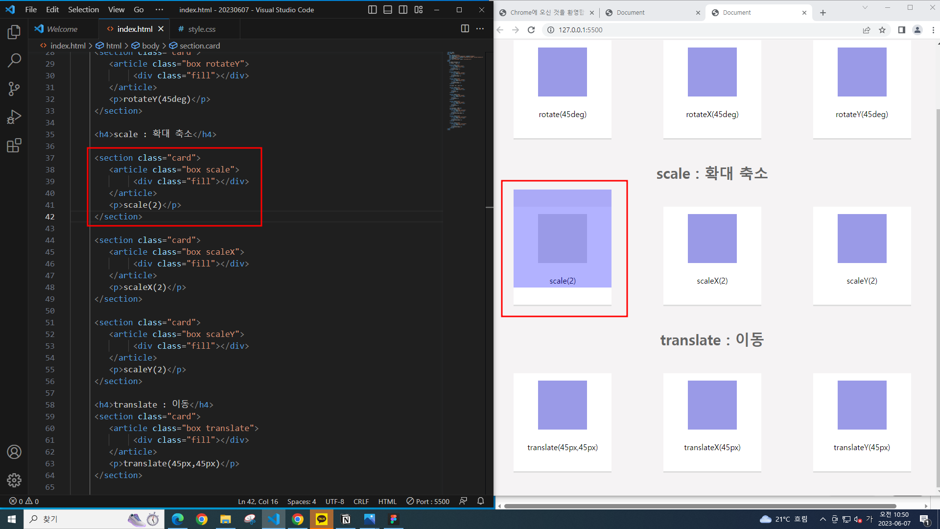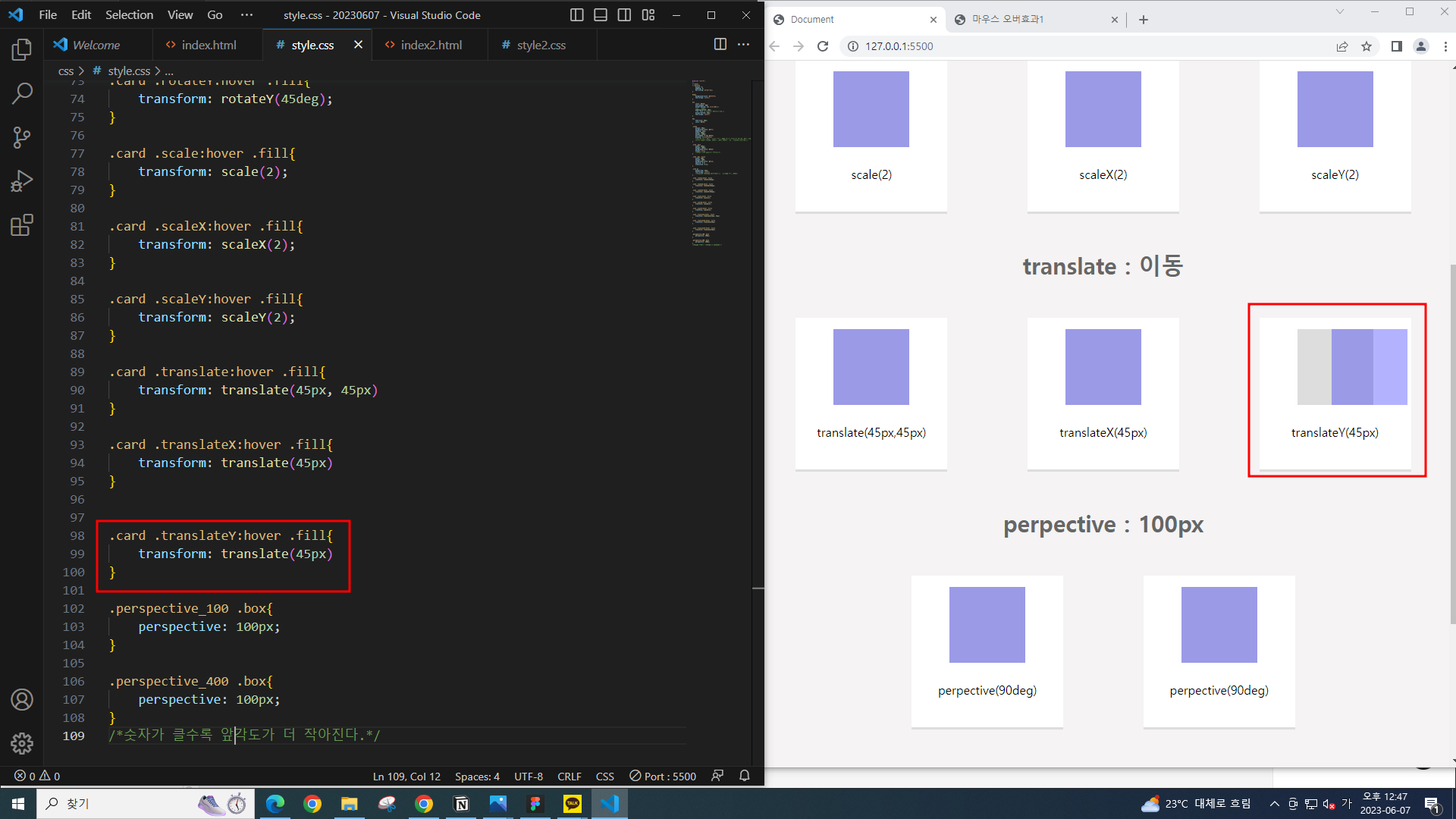 비주얼 스튜디오 코드⑮ 트렌스폼을 이용해서 효과주기_2