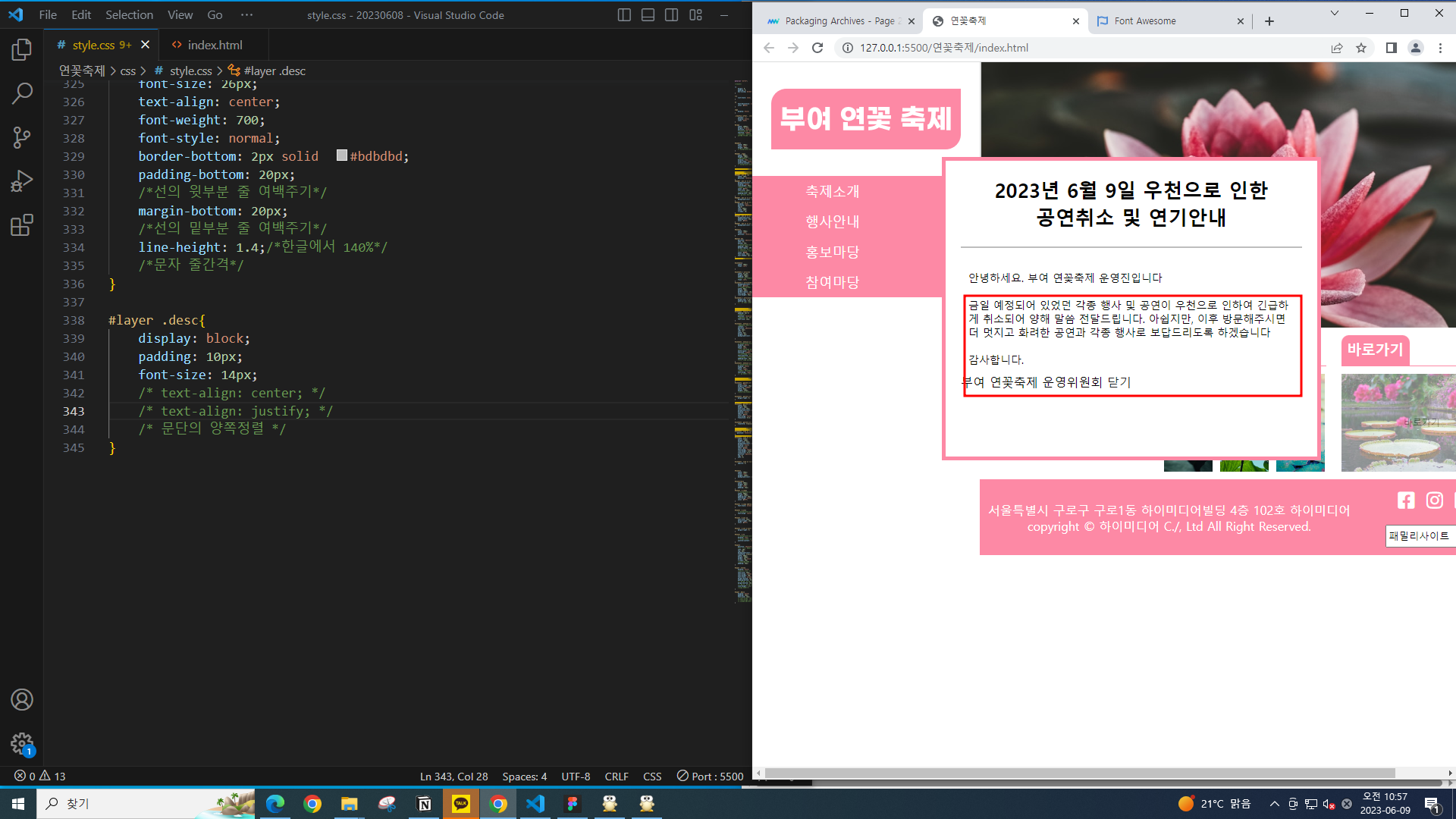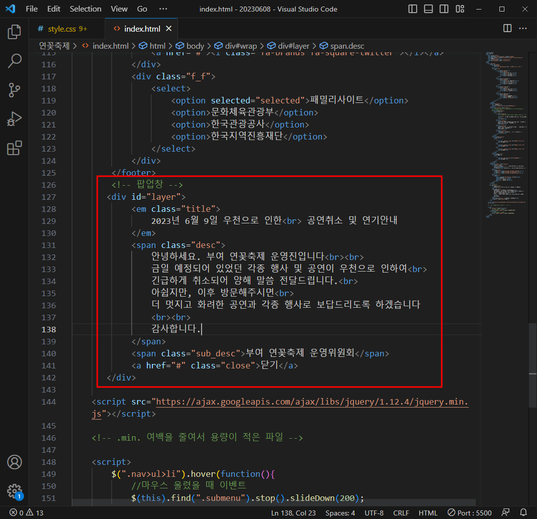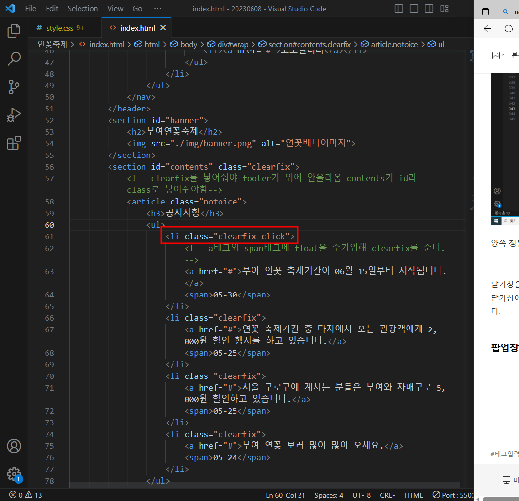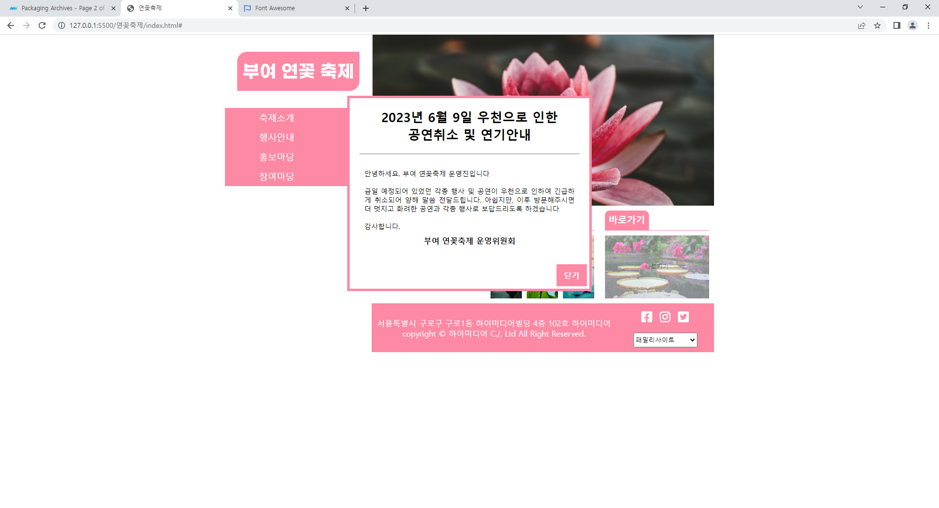 비주얼 스튜디오 코드 21 _ 연꽃축제 예제 _ 팝업창 만들기