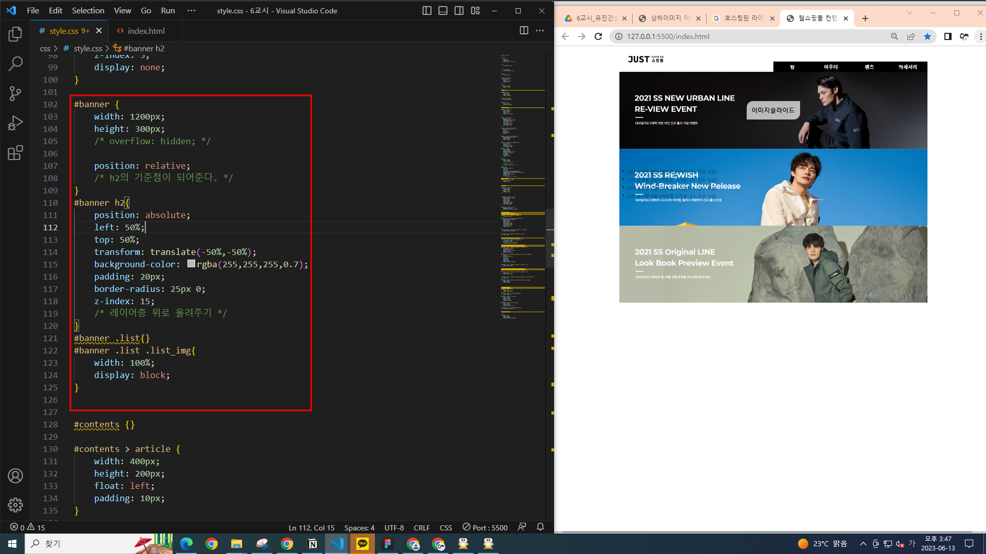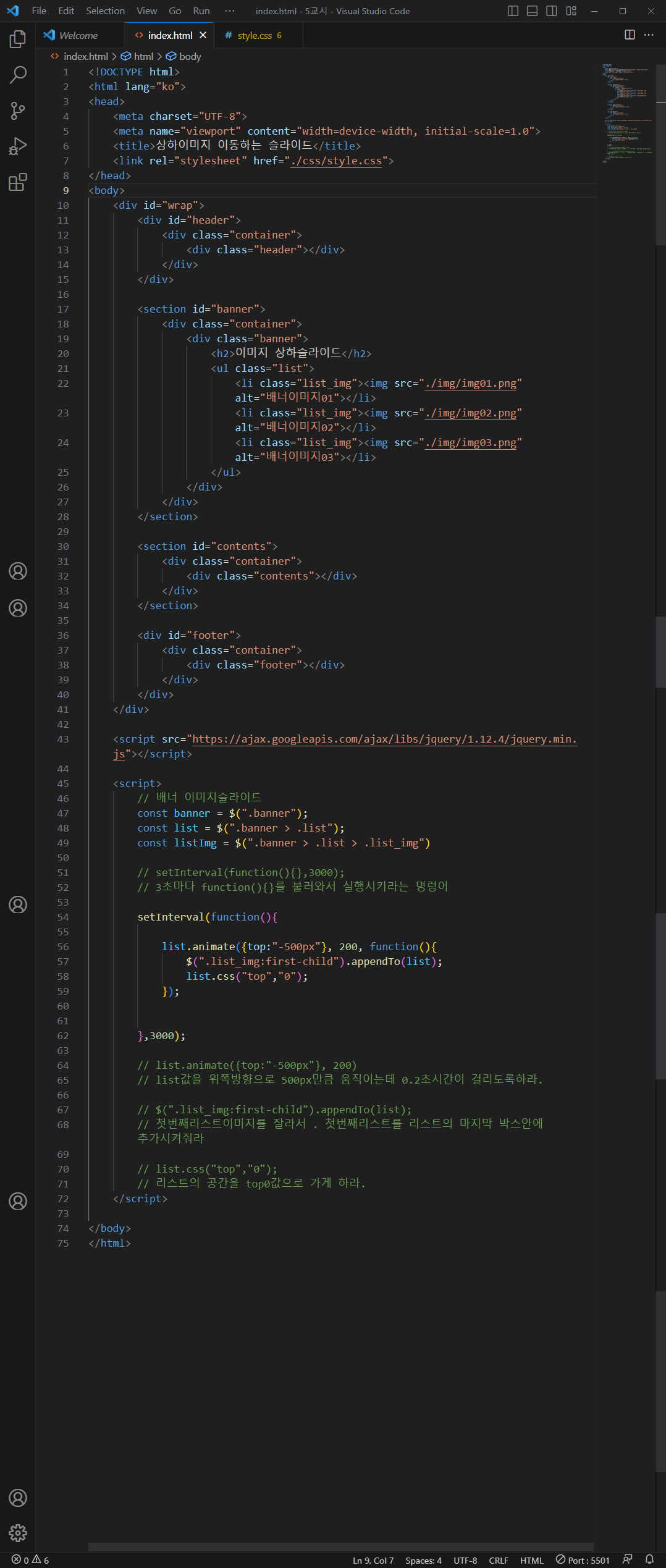 비주얼 스튜디오 코드 28_ 상하 슬라이드 배너 만들기