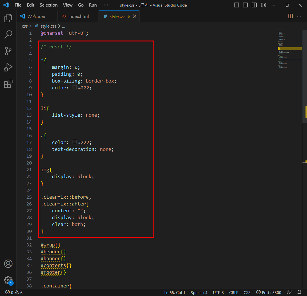 css> reset 하기