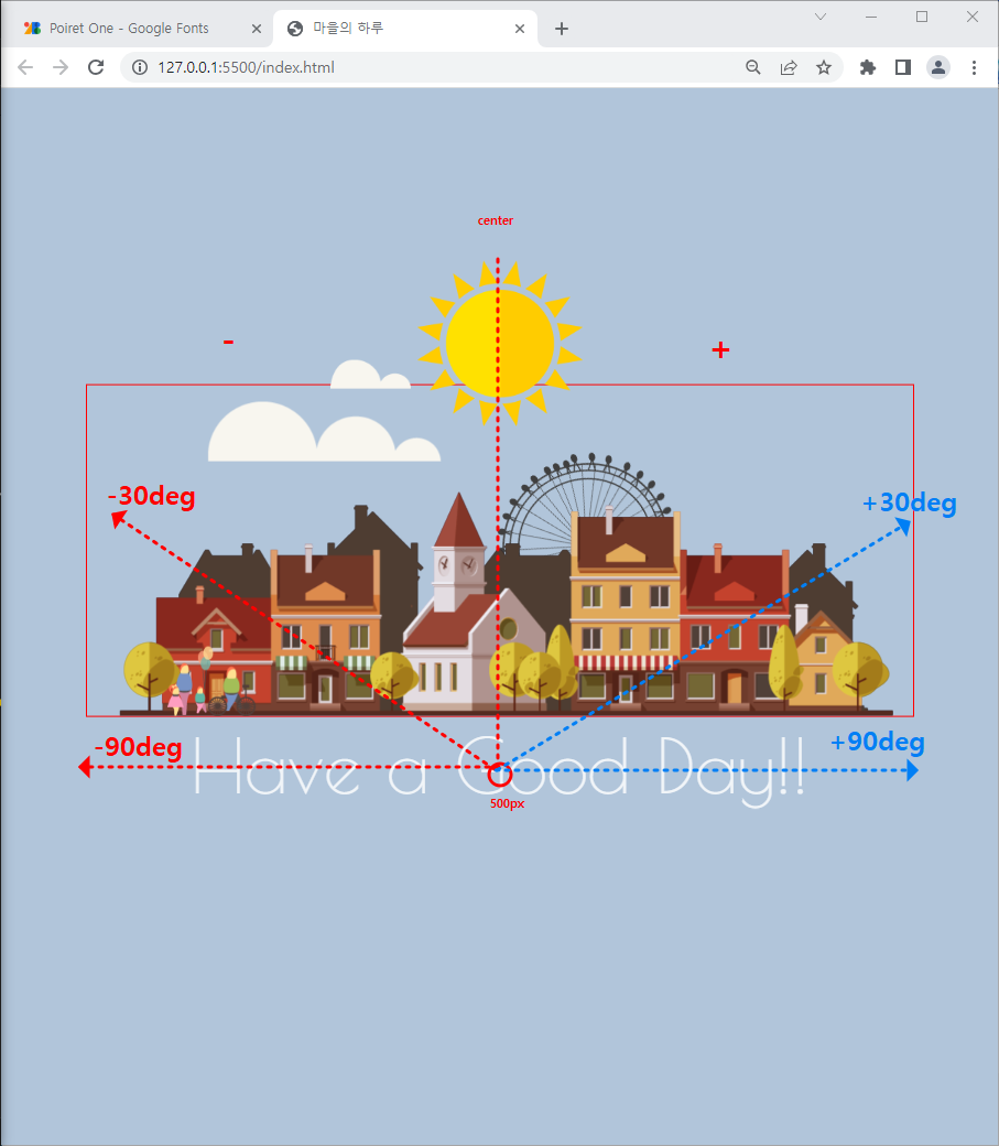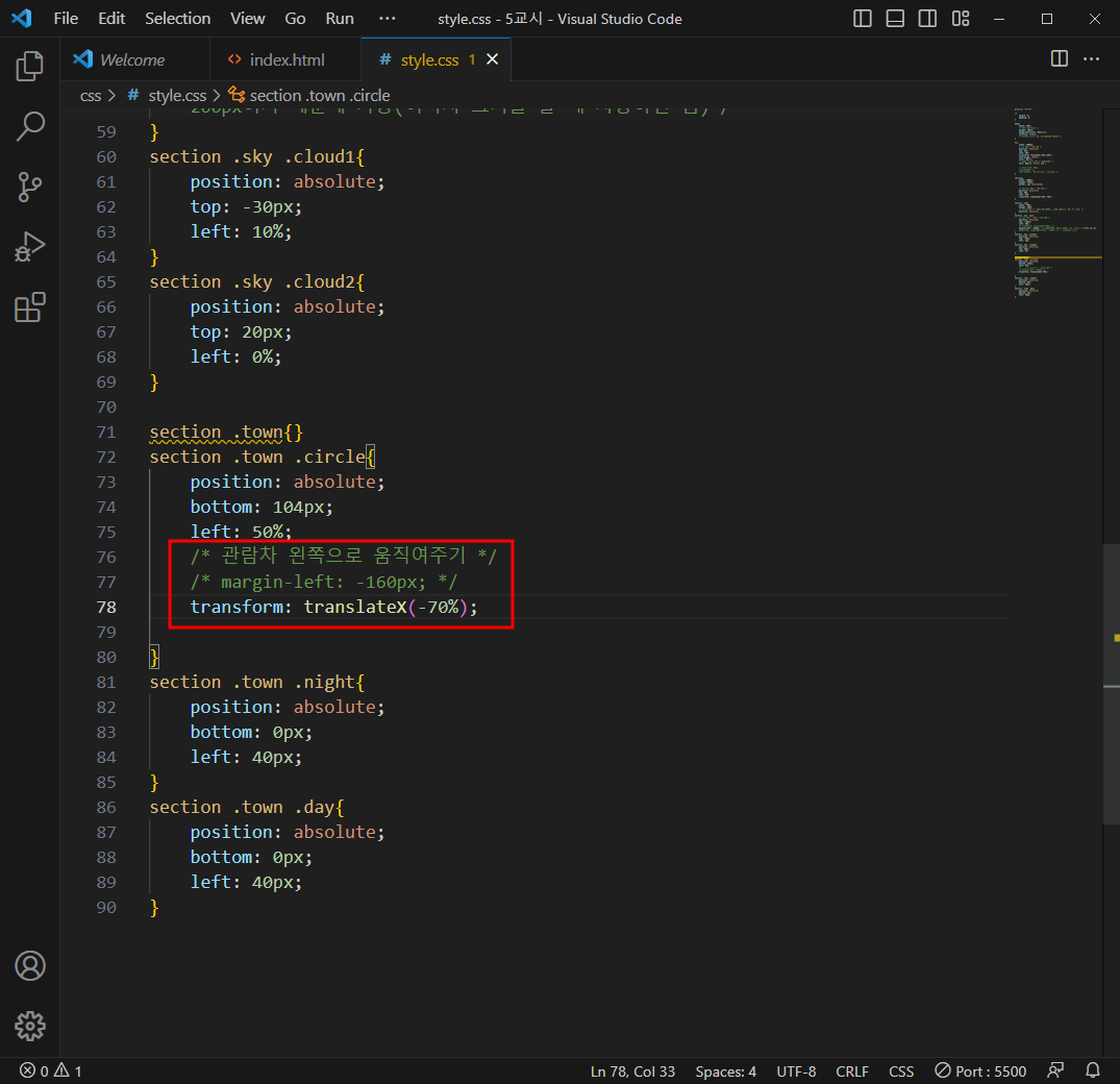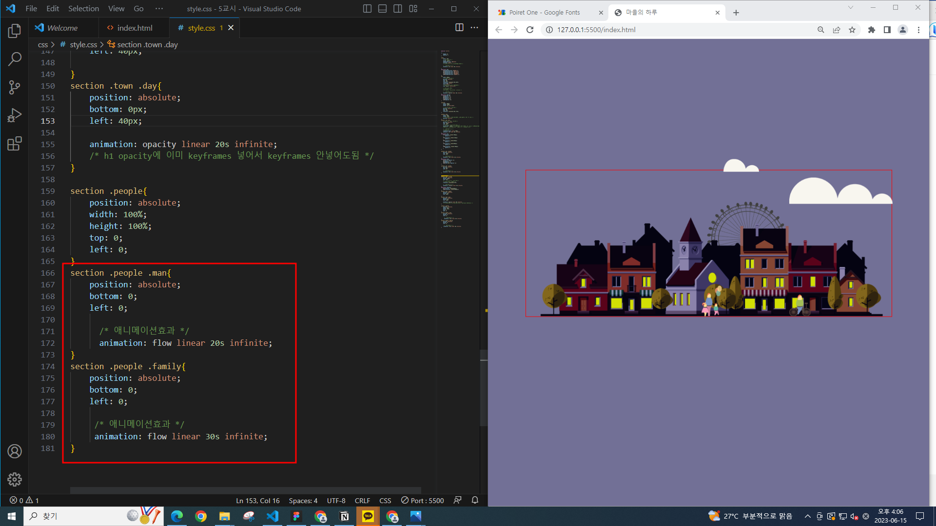 비주얼 스튜디오 코드 34 _ 애니메이션 효과 _ 마을의 하루 예제