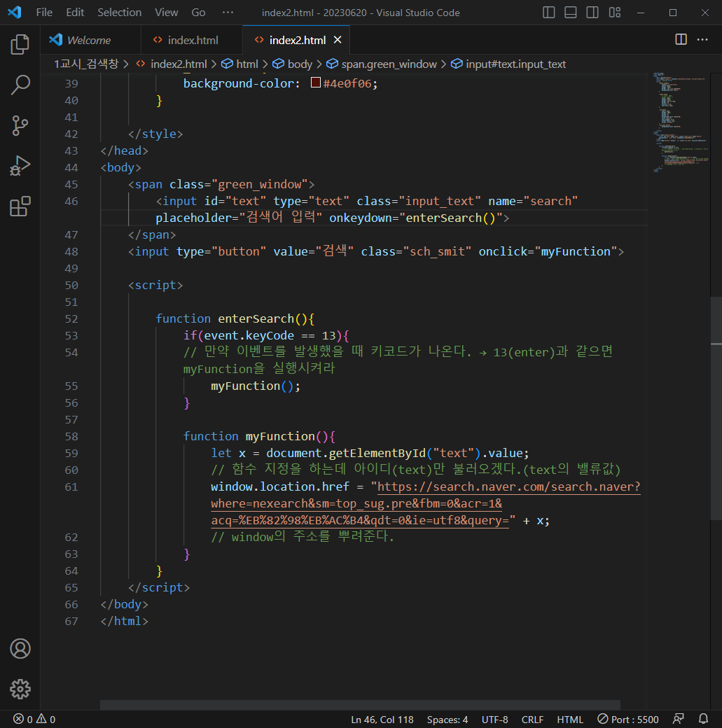 비주얼 스튜디오 코드 39_ 검색창 만들기