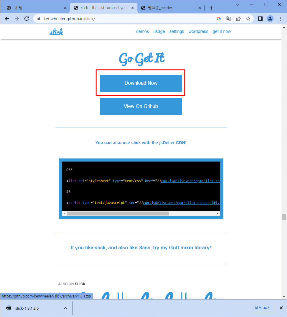 slick > usage 들어가서 방법보고 따라하면 된다.